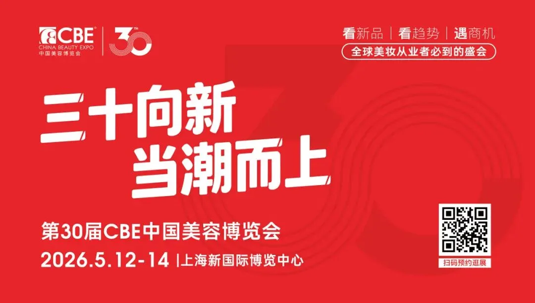 2026年5月12-14日,第30届CBE中国美容博览会将在上海新国际博览中心盛大启幕:23万平方米的展览面积,全球超40个国家及地区3200+化妆品企业,80000+美妆特色产品及新品,121个国家及地区的专业买家参会,成就全球美妆产业链的商贸价值平台。