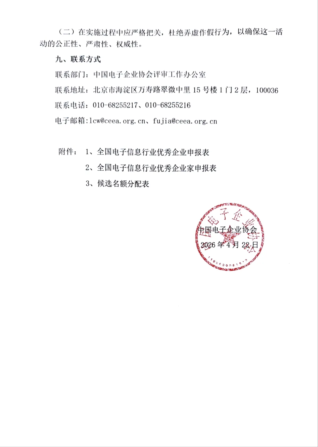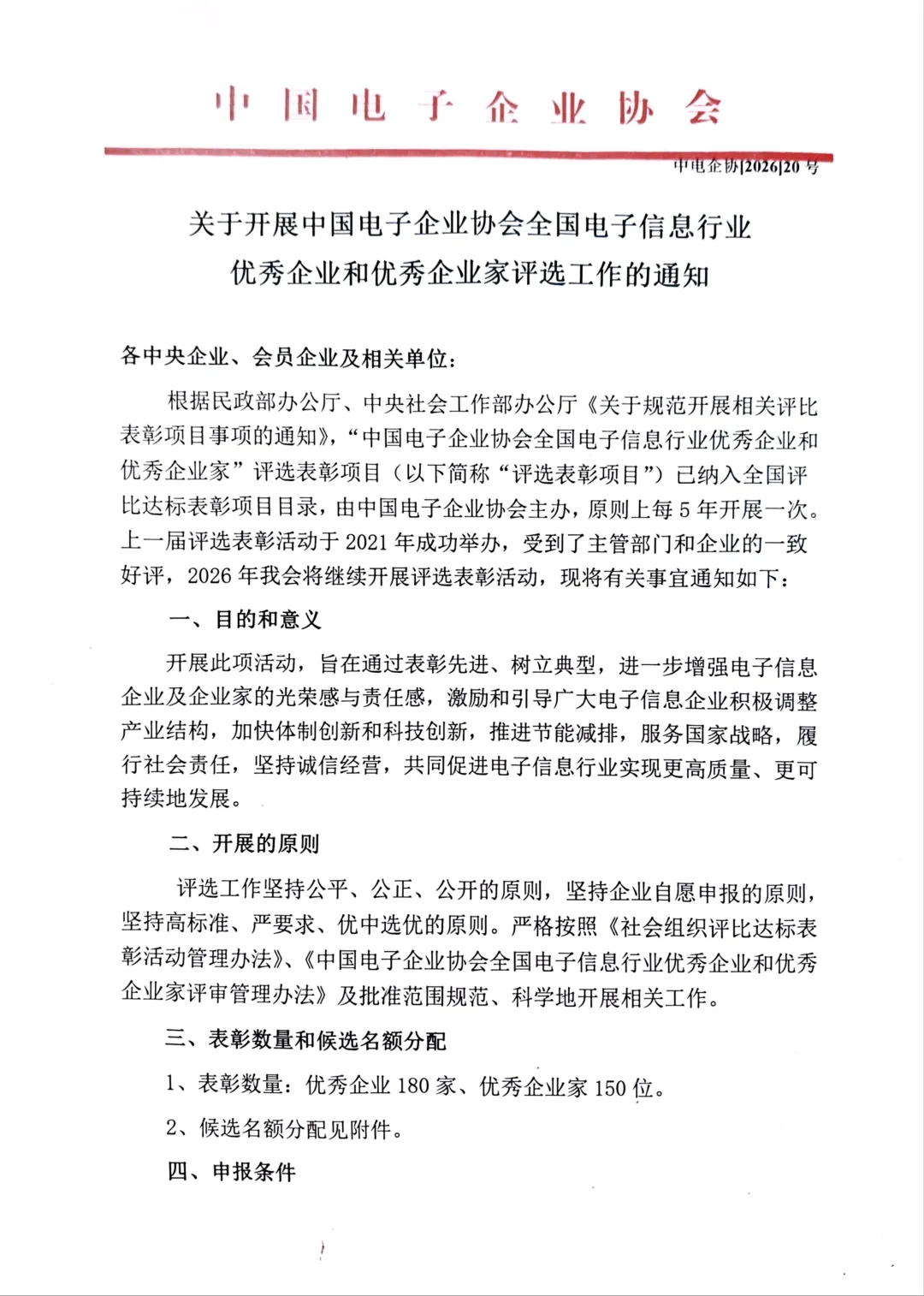 关于开展中国电子企业协会全国电子信息行业优秀企业和优秀家评选工作的通知
