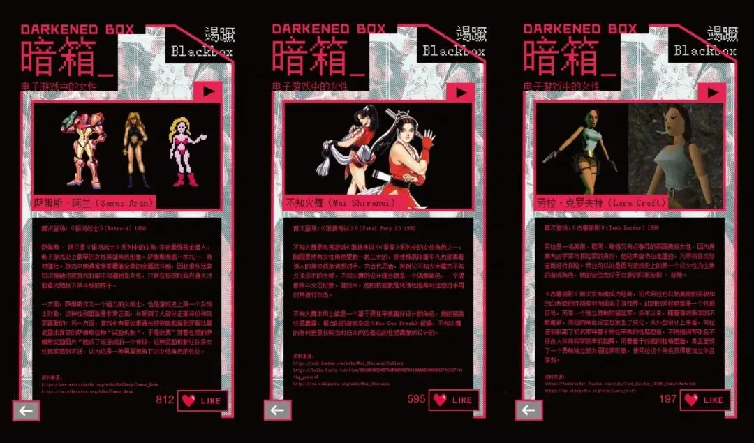 “暗箱:电子游戏中的女性”,贺婧、李昕璘、郑璐瑶、伊莎贝尔,设计学院“面向未来的策展实践”课程本科三年级学生提交方案截图