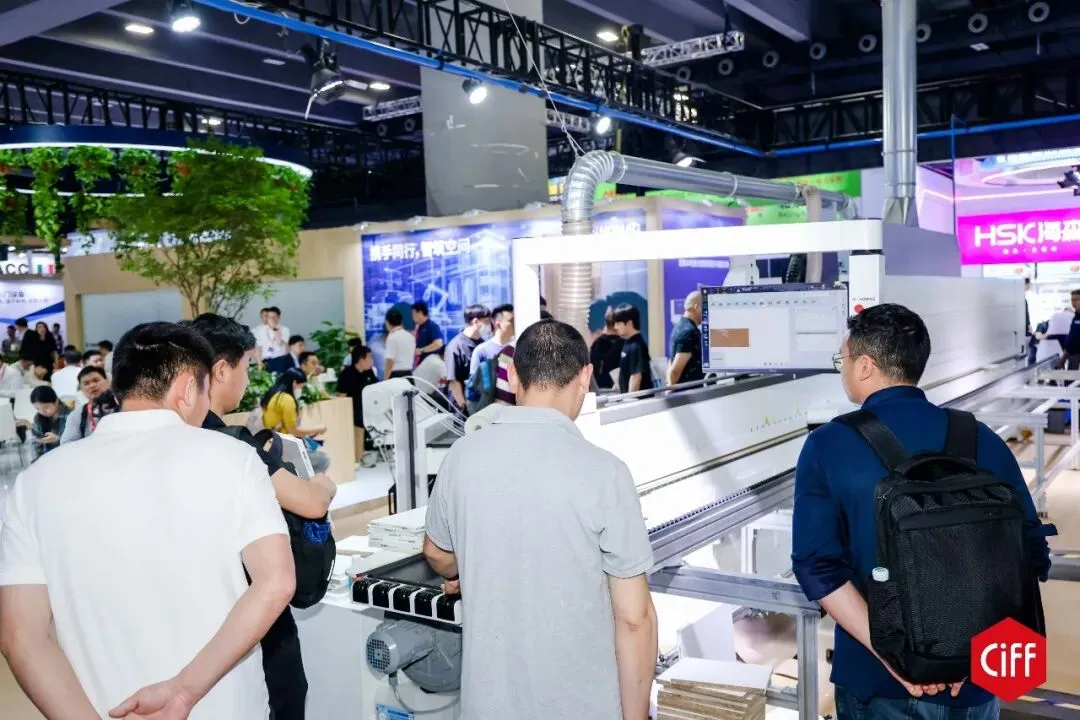 南兴装备携智能电脑裁板锯、激光封边机等全系列高效智能装备亮相,覆盖板式家具生产全流程;