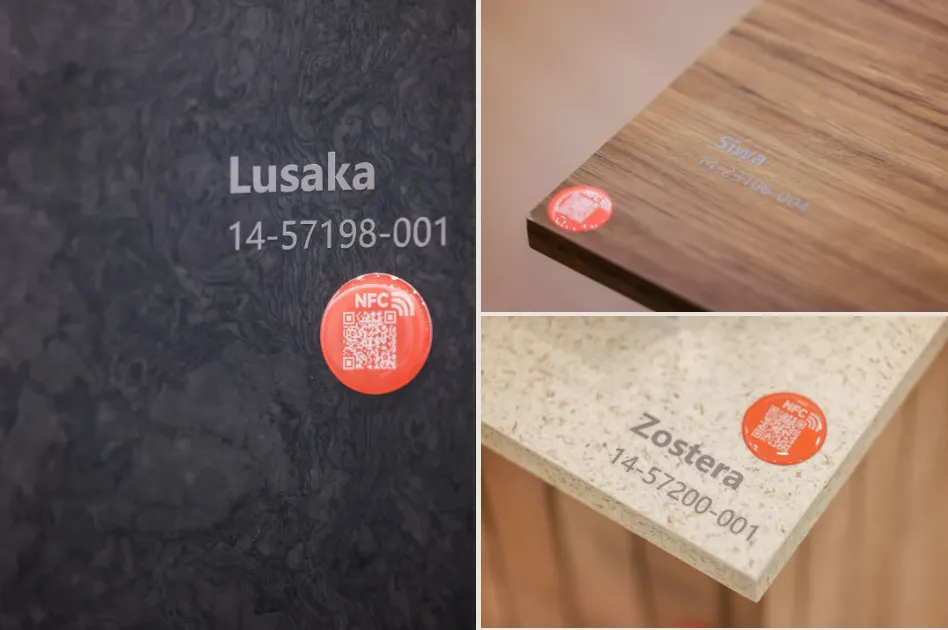 夏特以“前瞻意境”为主题,围绕“古今交响”、“大道至简”、“未界之美”三大领域呈现花色,现场搭配NFC标识实现信息快速查阅,提升交互与浏览效率;