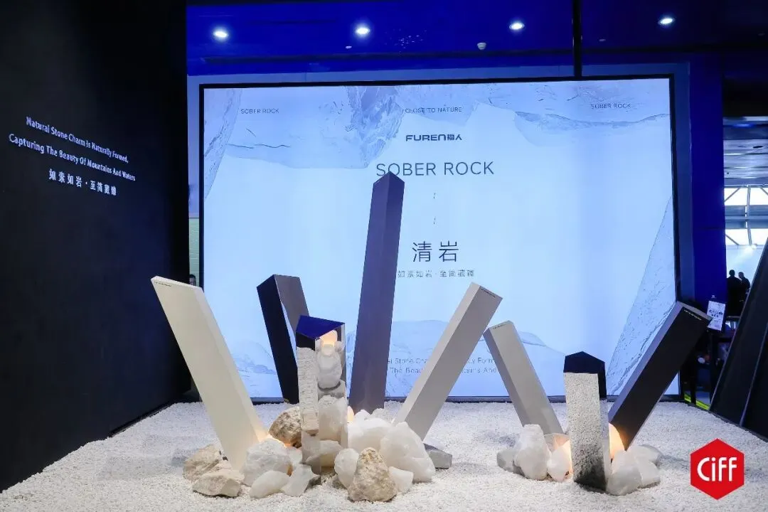 福人则以“秘境寻源”为核心,全球首发繁花、沙丘等多个系列新品,通过沉浸式场景与光影布局,直观展现产品细腻肌理与立体层次,让观众深度感受饰面美学与设计张力。