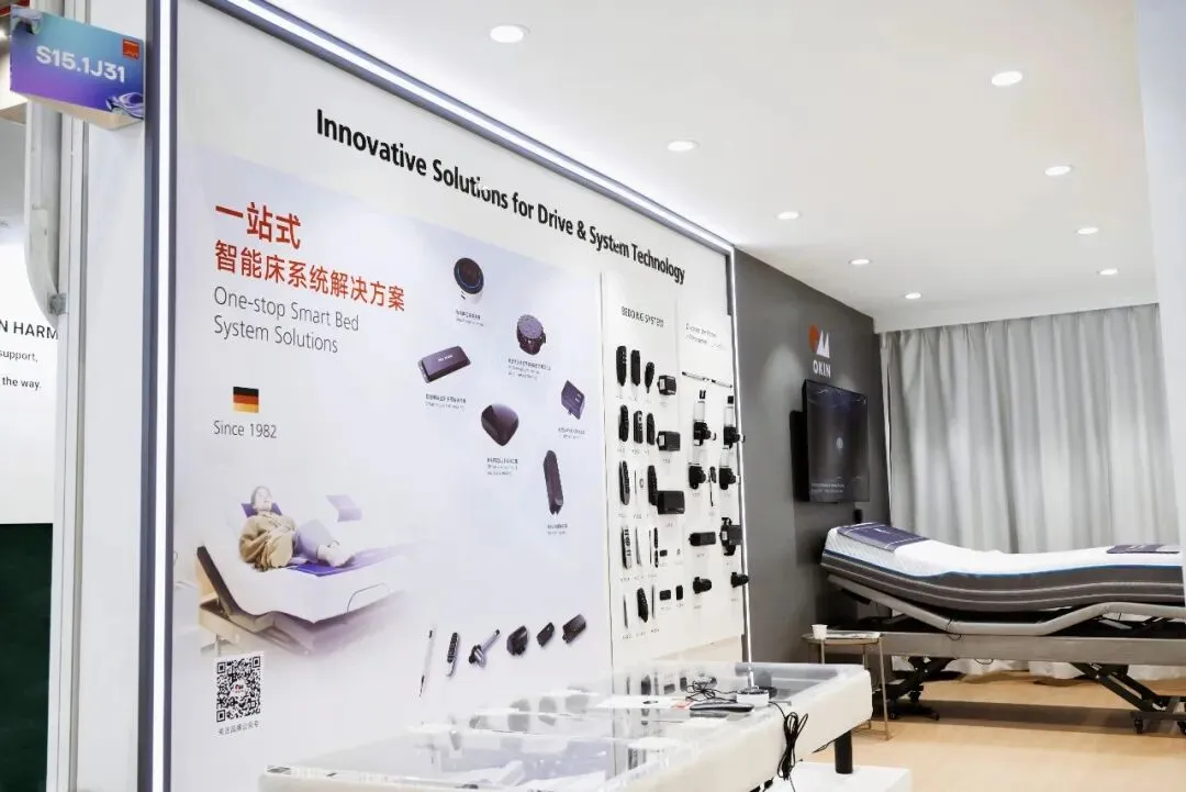 OKIN参展重点呈现功能沙发与智能床一站式解决方案,沙发侧重摇摆与全身放松,智能床包含助眠、AI陪伴功能,兼顾舒适与场景需求;