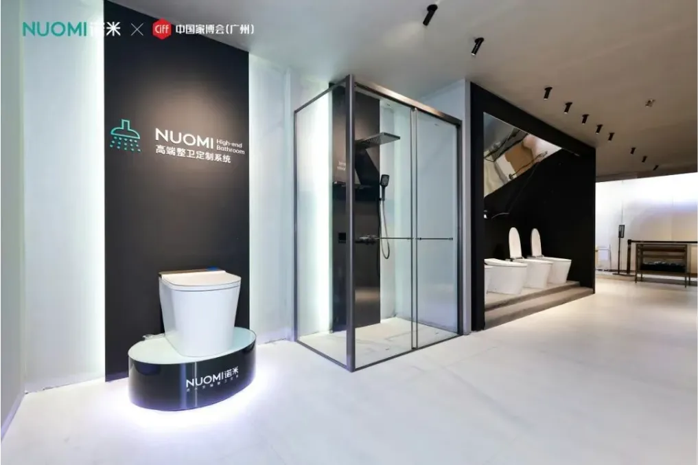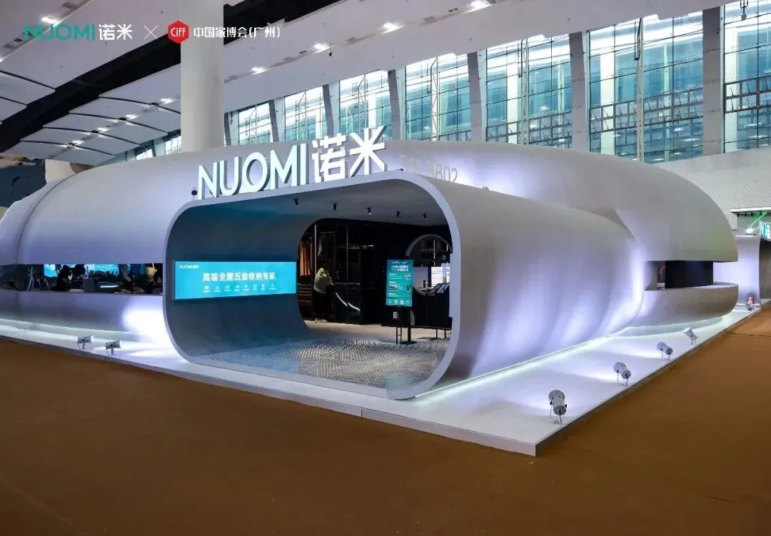 诺米以“星际飞碟”造型展馆亮相,正式宣布高端全屋五金生态链从七大系统升级至八大系统,新增高端整卫定制系统,实现从五金制造向科技生活方案的升级。