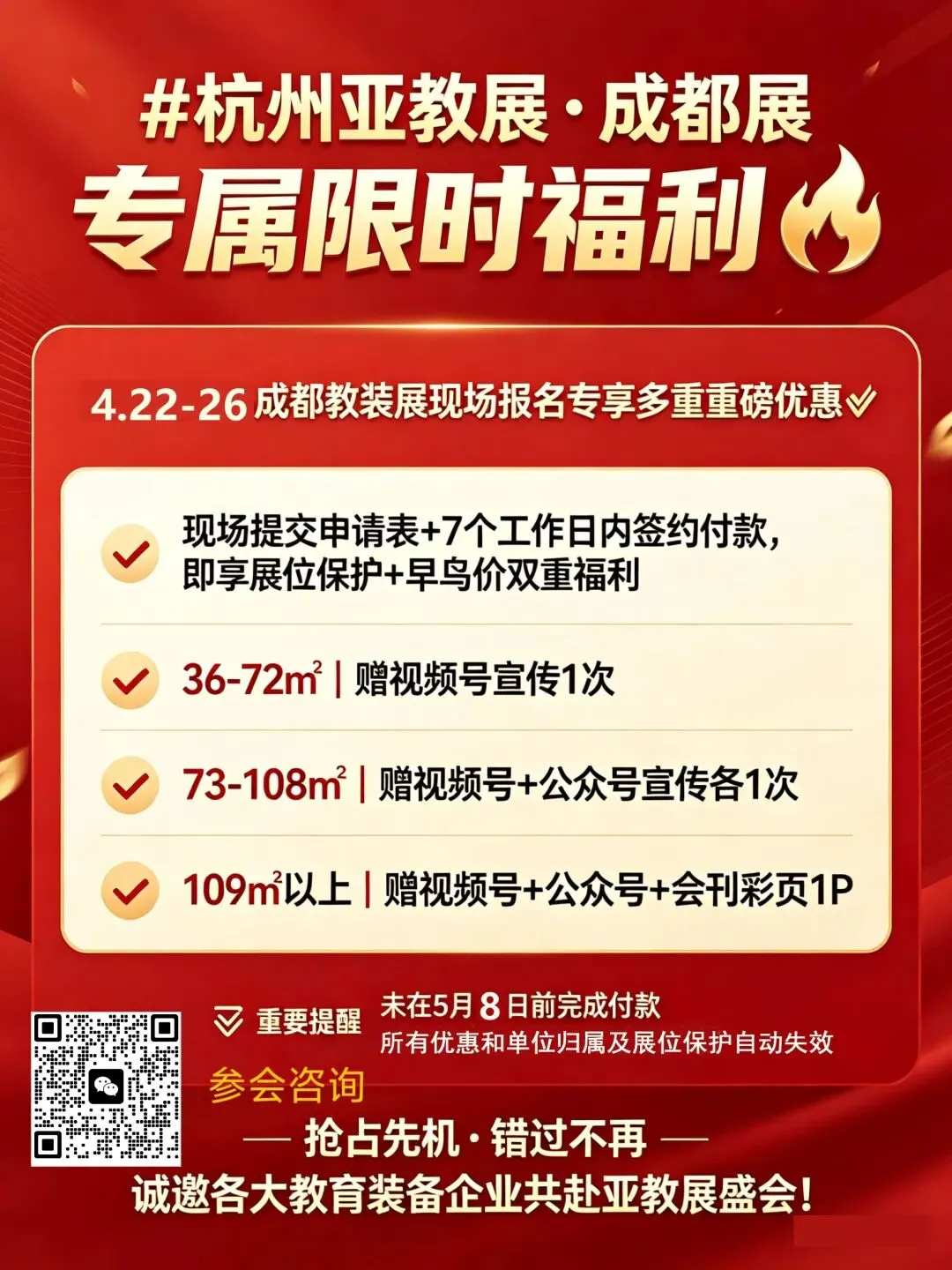 ?4.22-4.26成都教装展现场报名专享多重重磅优惠‼️