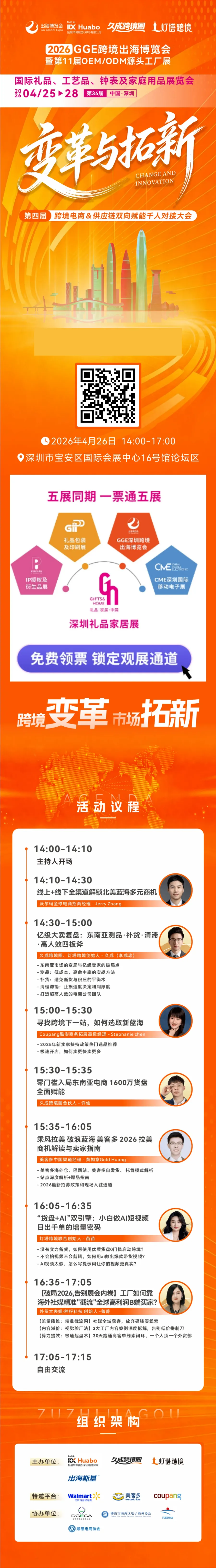 本届展会重磅打造两大主题论坛区,围绕合规、平台政策、AI赋能、新兴市场等核心议题,带来20+场干货分享。建议提前锁定目标场次,高效获取增长方法论。