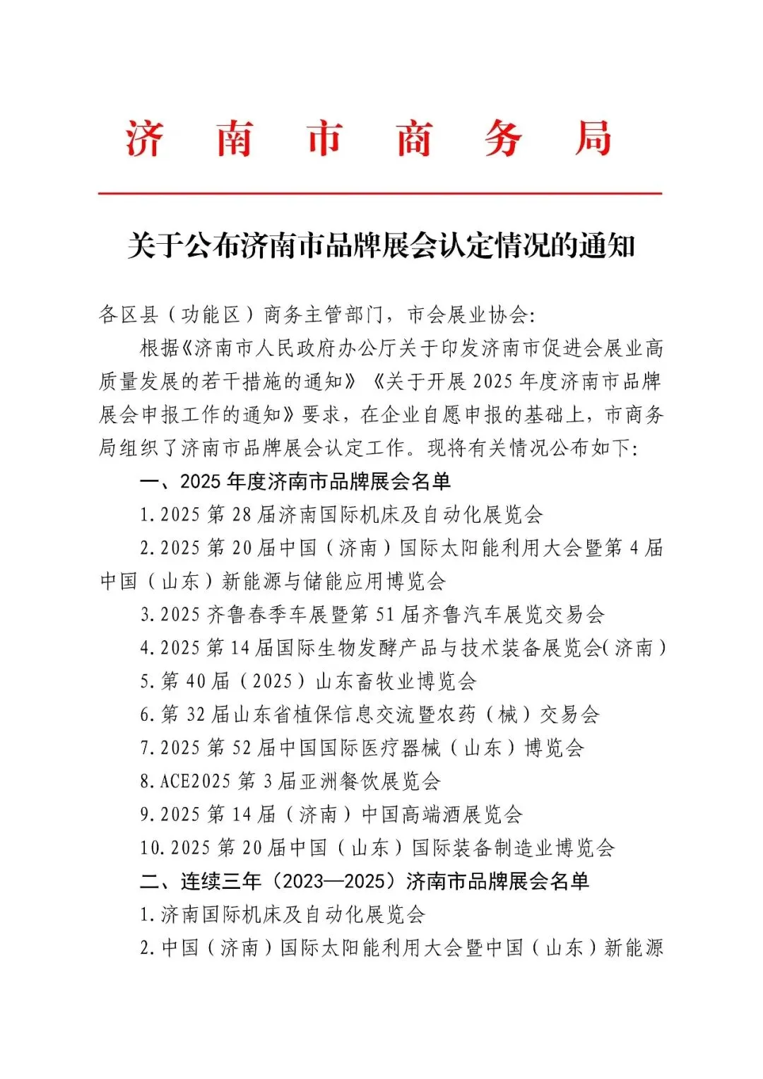 本次认定依据《济南市促进会展业高质量发展的若干措施》等相关文件,经企业自愿申报、专家评审等流程,最终确定年度品牌展会与连续三年品牌展会名录,旨在培育优质展会品牌、提升城市会展能级,助力济南打造区域性会展名城。