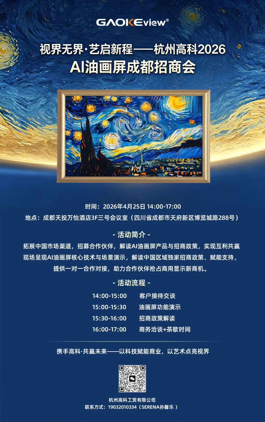 杭州高科2026 AI油画屏成都招商会,邀您共赢商显新蓝海!