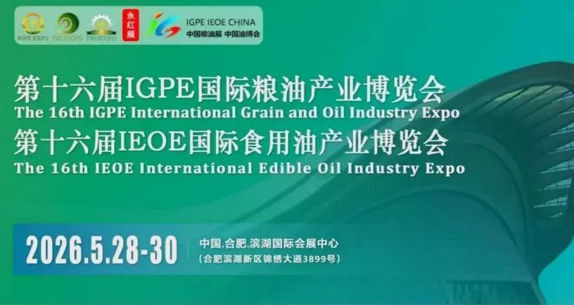 第十六届IGPE国际粮油产业博览会暨第十六届IEOE国际食用油产业博览会正式定档!2026年5月28日至30日将在合肥滨湖国际会展中心盛大举行。