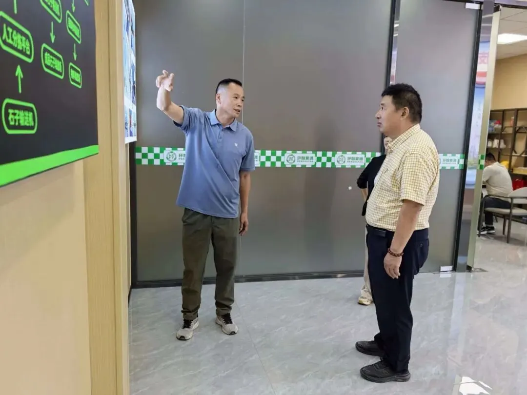 环智复源法人曾鸿昭对协会李运昌会长等一行的到访表示热烈欢迎。在参观和座谈中,曾鸿昭汇报了园区建设的最新进展,以及公司未来在原材料收集、绿色建材研发、再生产品市场推广等方面的战略规划。他表示,环智复源将致力于实现废弃物的精细化、梯级化利用,推动再生建筑材料在建设工程领域的规模化应用,并严格按照相关管理规定,进一步规范再生资源回收流程,强化全流程智能化管理,持续提升建筑垃圾资源化利用效率与水平。公司将以此次走访为契机,深化与协会的紧密协作,积极参与行业自律与规范建设,充分发挥在产业发展和技术研发等方面的作用,助力白云区乃至广州市“无废城市”建设。