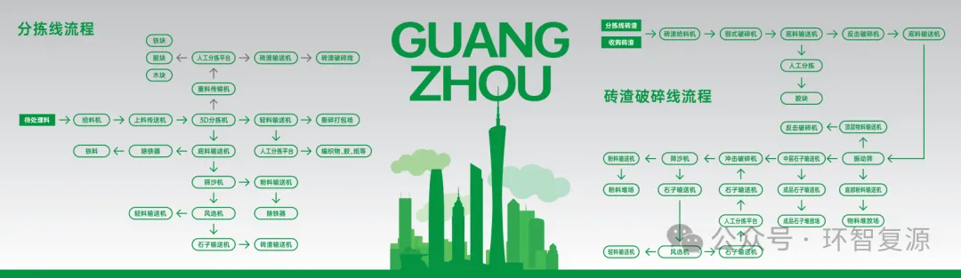 环智复源绿色循环经济产业园位于广州市白云区钟落潭镇,是大湾区聚焦建筑固废资源化利用的标杆项目。项目一期总投资约1亿元,占地3.5万平方米,设计年处理建筑垃圾100万吨,是大湾区产能领先的建筑固废资源化再生利用基地。