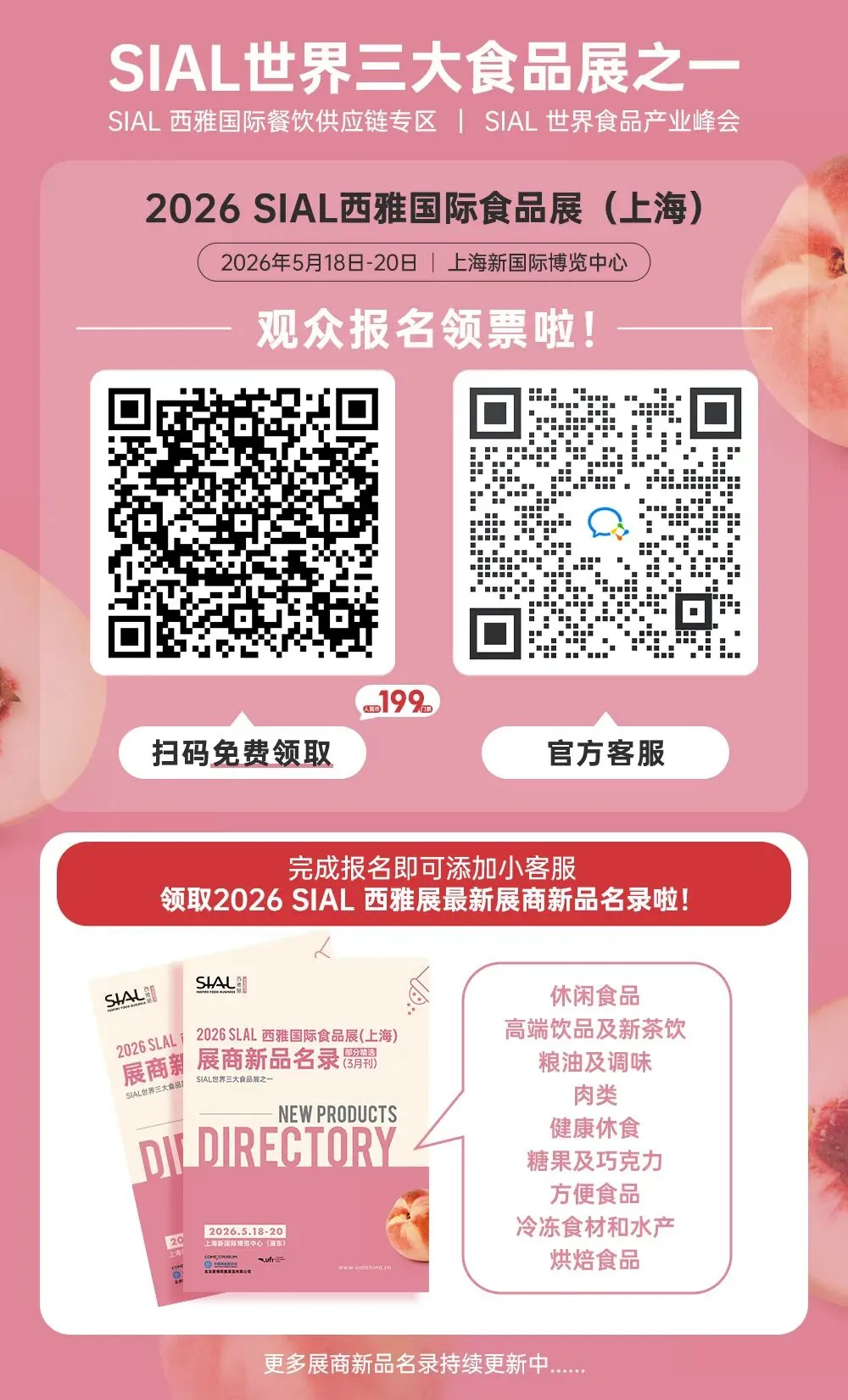 深耕中国食饮市场26年,备受业界瞩目的5月上海食品展——SIAL西雅国际食品和饮料展览会将于2026年5月18日-20日在上海新国际博览中心盛大启幕!