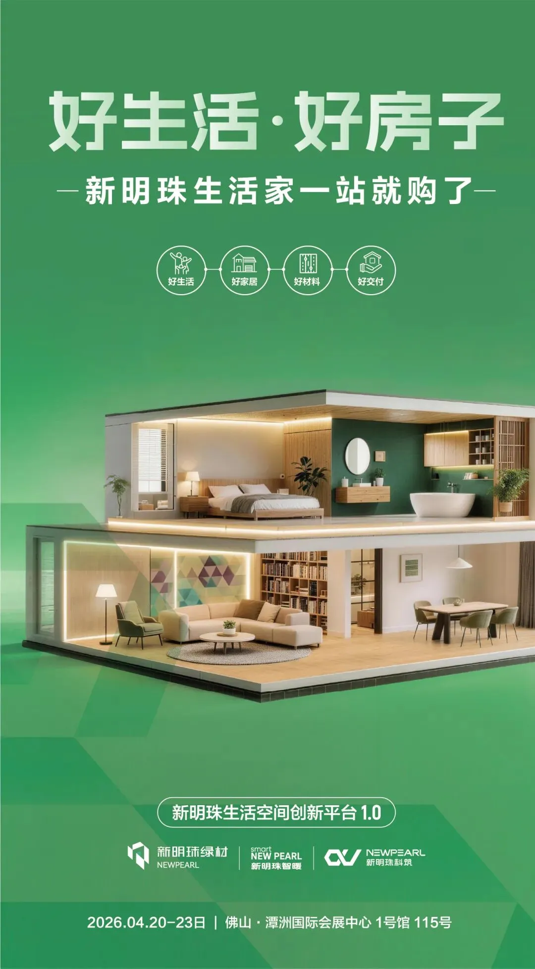 承接新明珠集团“建筑饰面系统解决方案提供商”的战略定位,本次展位围绕“好生活、好家居、好材料、好交付”四大核心,打造“材料+智能+交付”全链路解决方案,构建“新明珠生活空间创新平台1.0”,让“好房子”标准落到实处,让“好生活”真正触手可及。