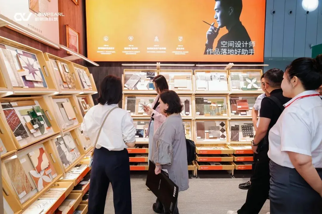 现场呈现48款主题情绪板,以新明珠科筑、新明珠绿材产品为主,搭配锦研院、犀牛、甲谷人等多个进口品牌特色花砖,全面覆盖法式复古、意式极简、现代轻奢、静奢风等当下主流家居美学风格。从色彩配比、材质碰撞到纹理组合,一站式直观呈现搭配方案,为设计落地提供清晰参考。