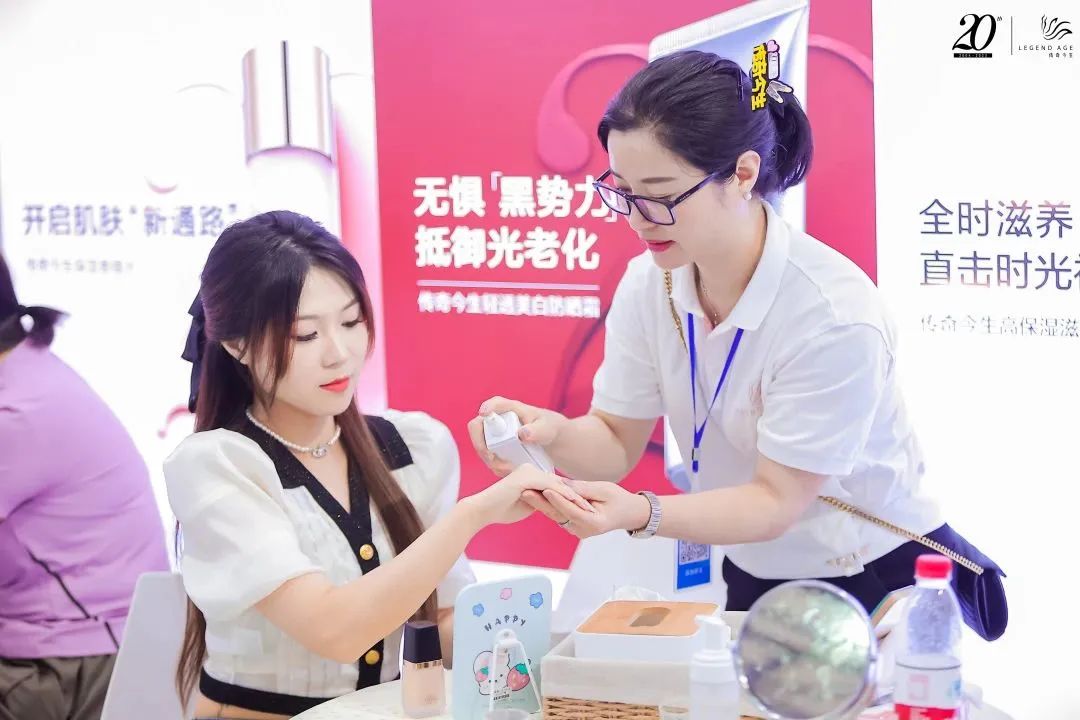 传奇今生作为美博会老朋友之一,此次参展以全新姿态闪亮登场,展位现场设有产品展示区、体验区与洽谈区,凭借品牌实力、独具特色的极致单品、亮眼的展位设计,吸引无数人驻足咨询。