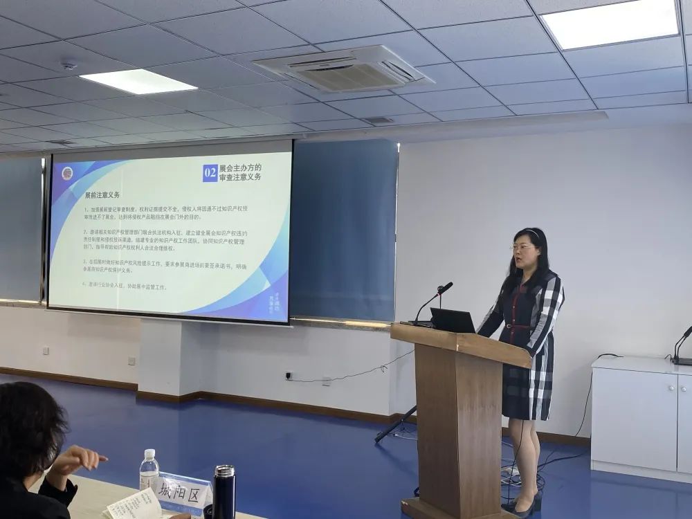 2023年5月11日,青岛市贸促会举办全市会展业务培训会。各区市会展主管部门、重点会展企业相关负责人共60余人参加会议。诚功所高级合伙人、知产专委会主任张旺受邀作会展知识产权保护相关内容普法讲座。