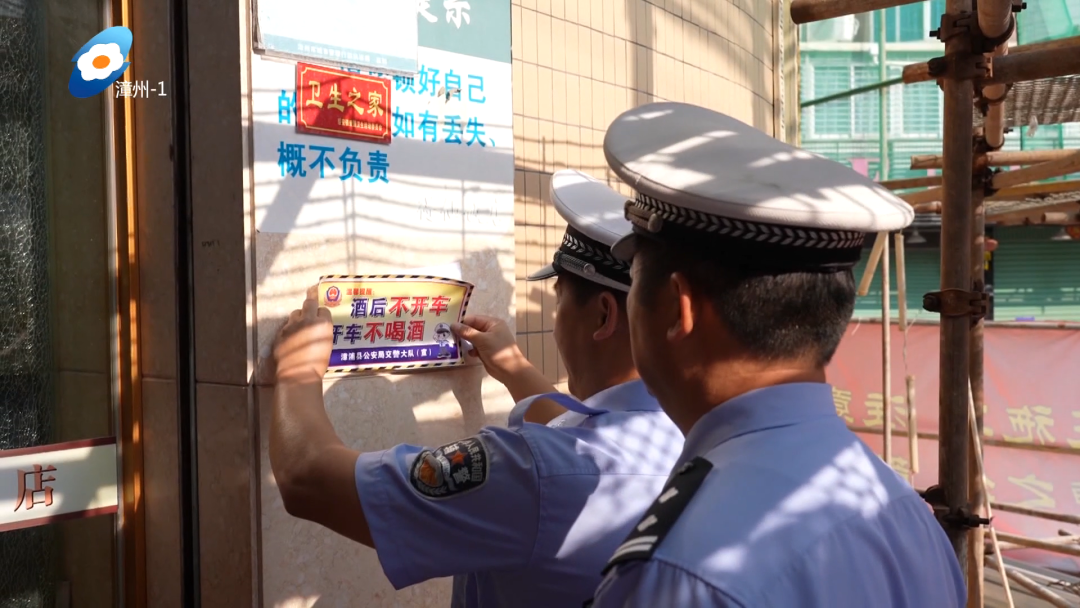漳浦县公安局交警大队民辅警深入辖区酒店、饭店、酒吧、KTV等涉酒场所,在出入口、收银台、大堂等显眼位置粘贴宣传海报,宣传酒醉驾的社会危害、法律责任,公布酒醉驾的处罚标准,通过这种直观的方式,进一步增强酒店员工及就餐群众的交通安全意识。同时,要求酒店负责人及员工积极参与到禁止酒驾的宣传教育工作中来,明确劝导责任,落实劝导义务,做好“禁酒驾”劝导员,注意询问和观察消费者是否驾车,劝解顾客“喝酒不开车、开车不喝酒”,温馨提示其切勿酒后驾车,切勿触碰酒后驾驶的高压线,真正从源头上遏制酒驾违法行为的发生。