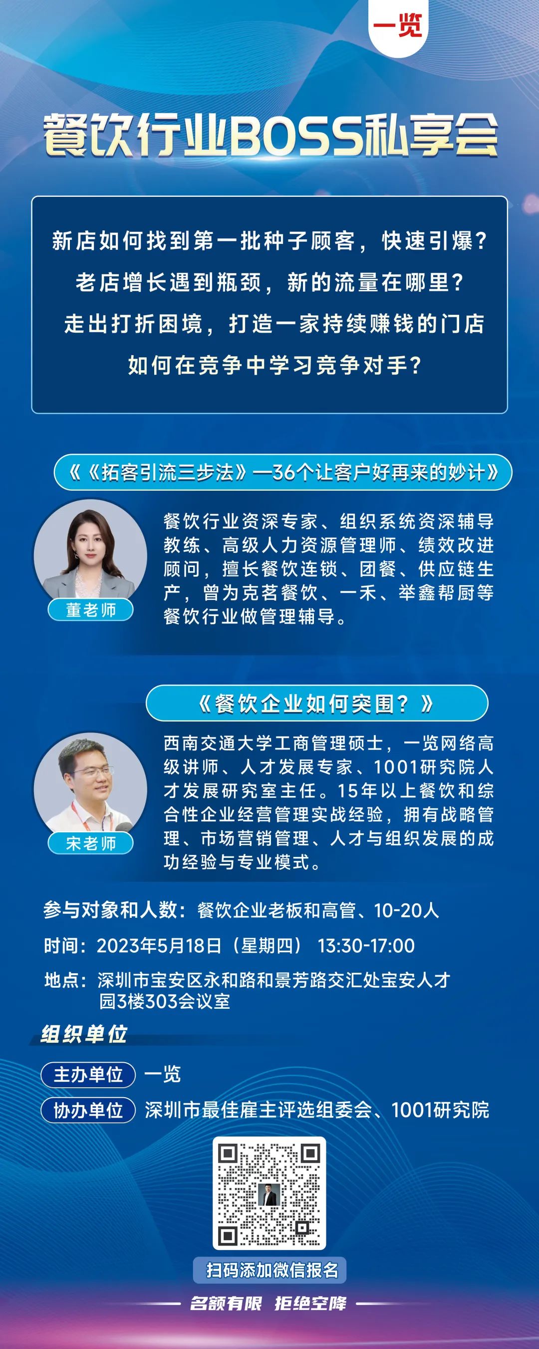 餐饮行业线下精品沙龙活动预告,欢迎各位餐饮老板报名参加: