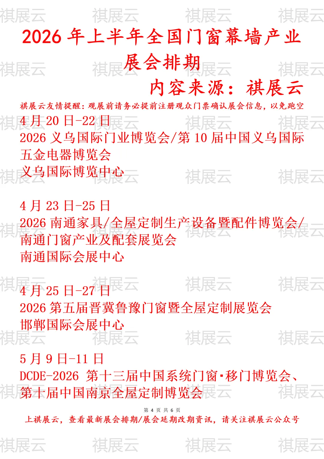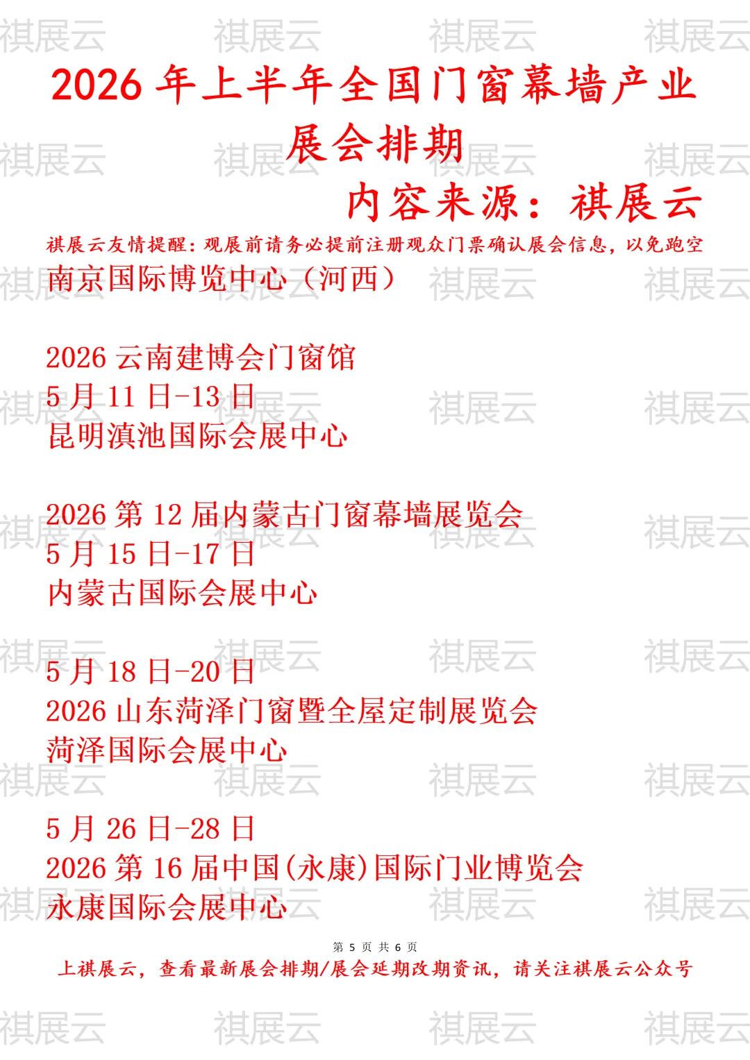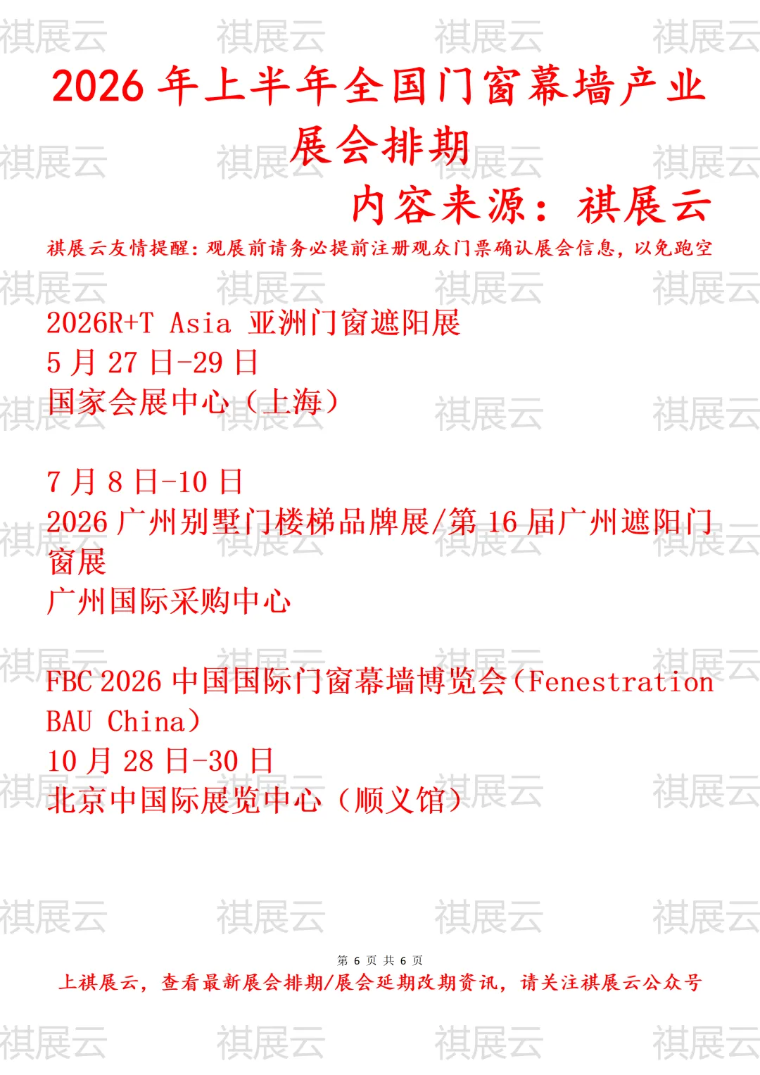 展会排期丨2026年下半年全国门窗幕墙/门产业展会时间表