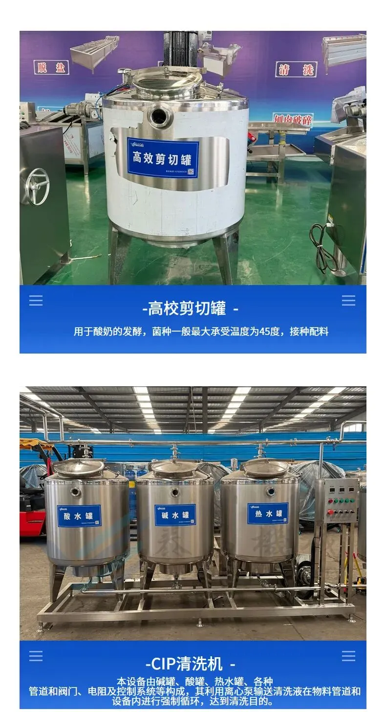 凝固型酸奶生产线的基本生产工艺流程:原奶采集制冷暂存→过滤→ 预热 → 均质 → 杀菌 →预冷→ 发酵 → 制冷→ 灌装。配套设备:制冷罐→双联过滤器 → 预热罐 → 均质机→ 杀菌罐 → 预冷罐→发酵罐→制冷罐→ 灌装机 →CIP。