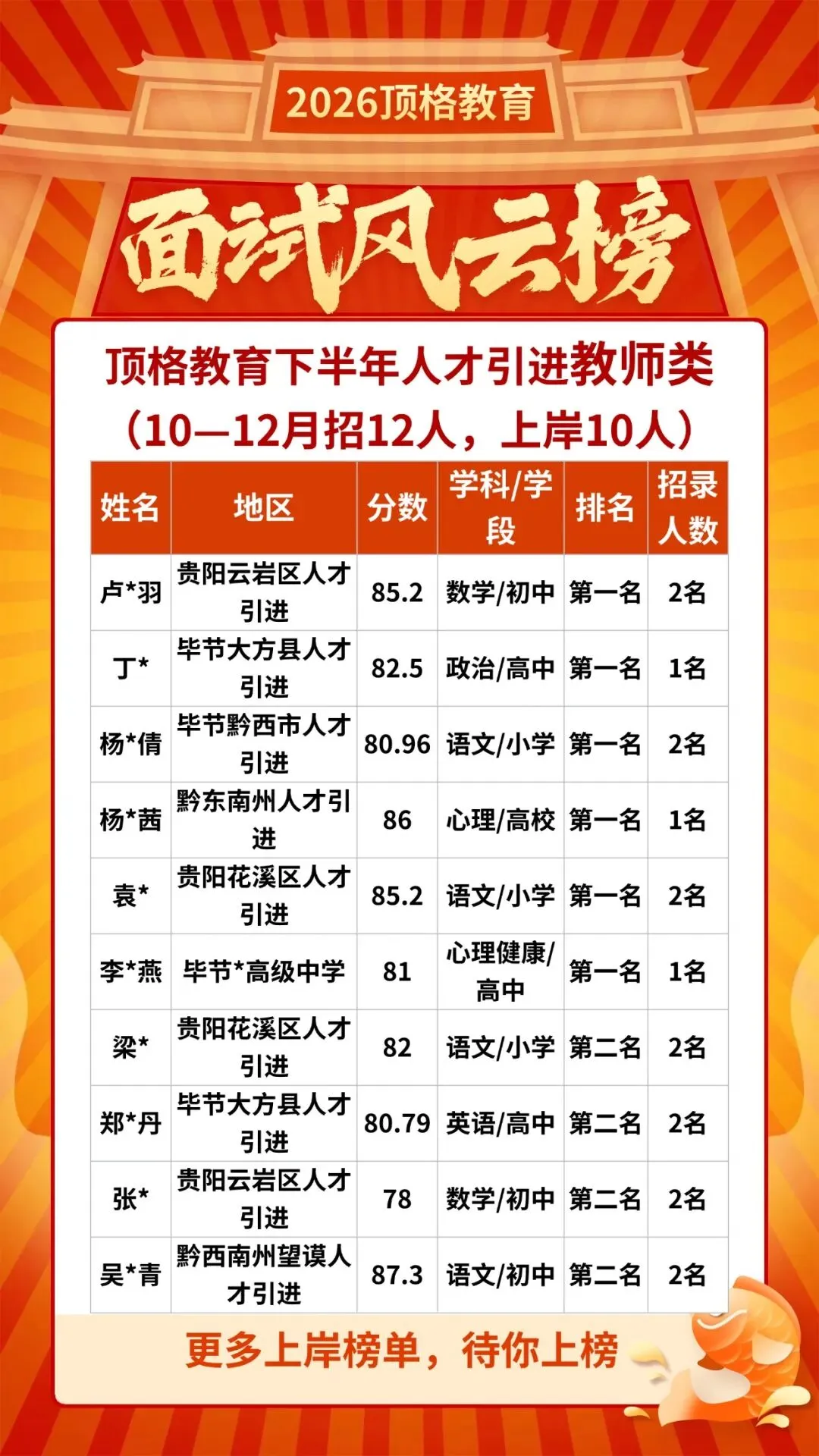 顶格教育人才引进往年光荣榜