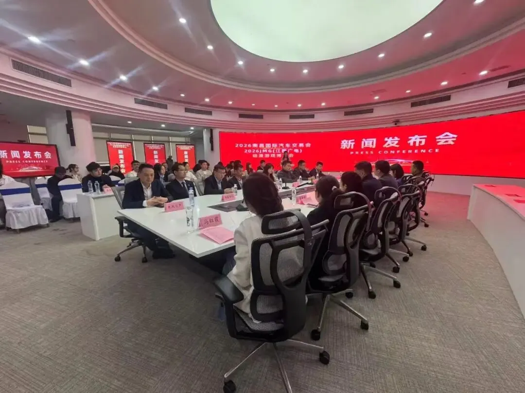 2026年4月22日上午10时18分,2026南昌国际汽车交易会、2026JMG江西广电动漫游戏博览会新闻发布会在江西广播电视台融媒体中心举行。江西广电传媒集团等主办方代表,各大汽车品牌代表及媒体记者出席。