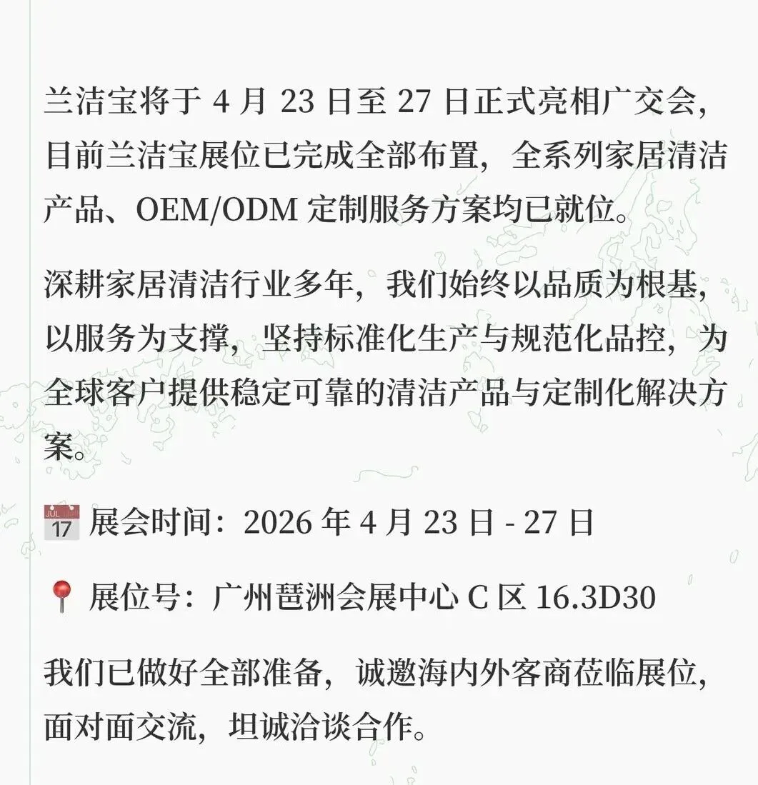 广交会明日开展,兰洁宝准备就绪