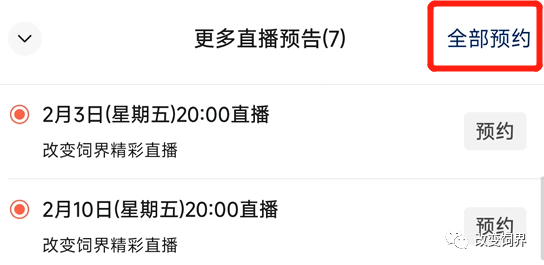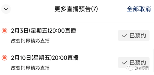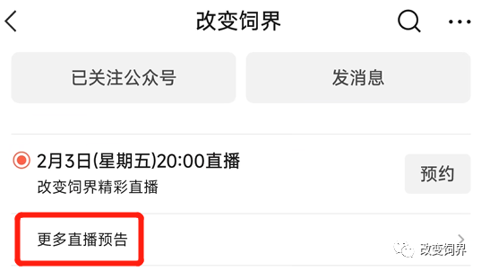 一键预约更多改变饲界视频号精彩直播!