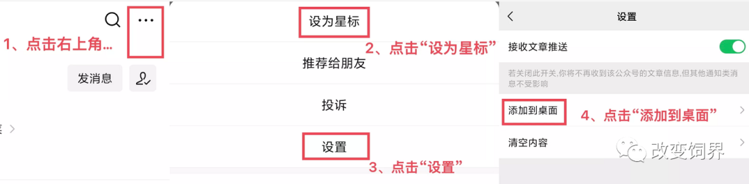 微信最新规则,如果不关注改变饲界,不设为星标,不点赞,经常不点在看,推送系统默认对改变饲界的消息不感兴趣,将不会及时甚至不会收到改变饲界的消息,如果想第一时间收到最新饲界消息,请关注 改变饲界,按下面图示进行设置即可