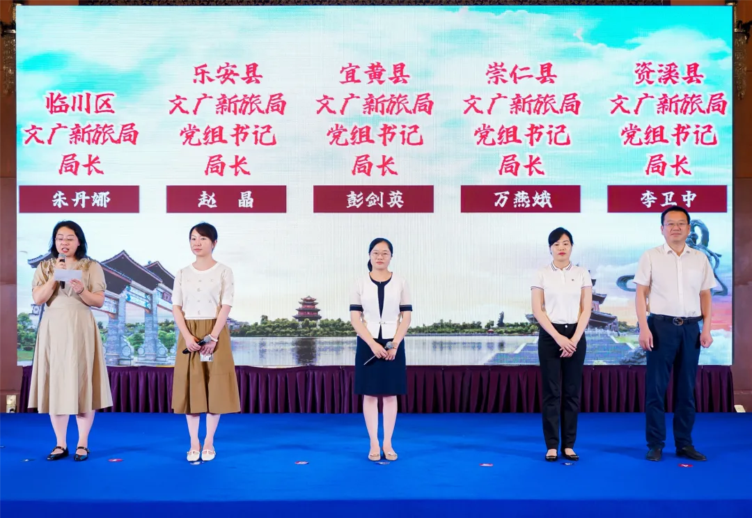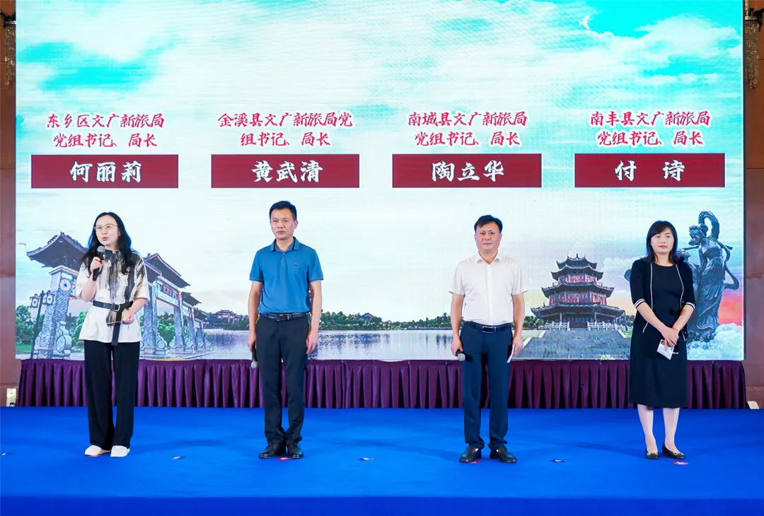 在此次推介活动上,来自广昌县、黎川县、文昌里景区、大觉山景区的“推荐官”们先后登台,重点推介了各自区域以及其旅游资源优势,一个个活力的城市和景区新貌展现在参会者面前。同时,来自临川区、乐安县、宜黄县、崇仁县、资溪县、东乡区、金溪县、南城县、南丰县9地的文旅部门书记、局长一一集体登台亮相并做概要推介。