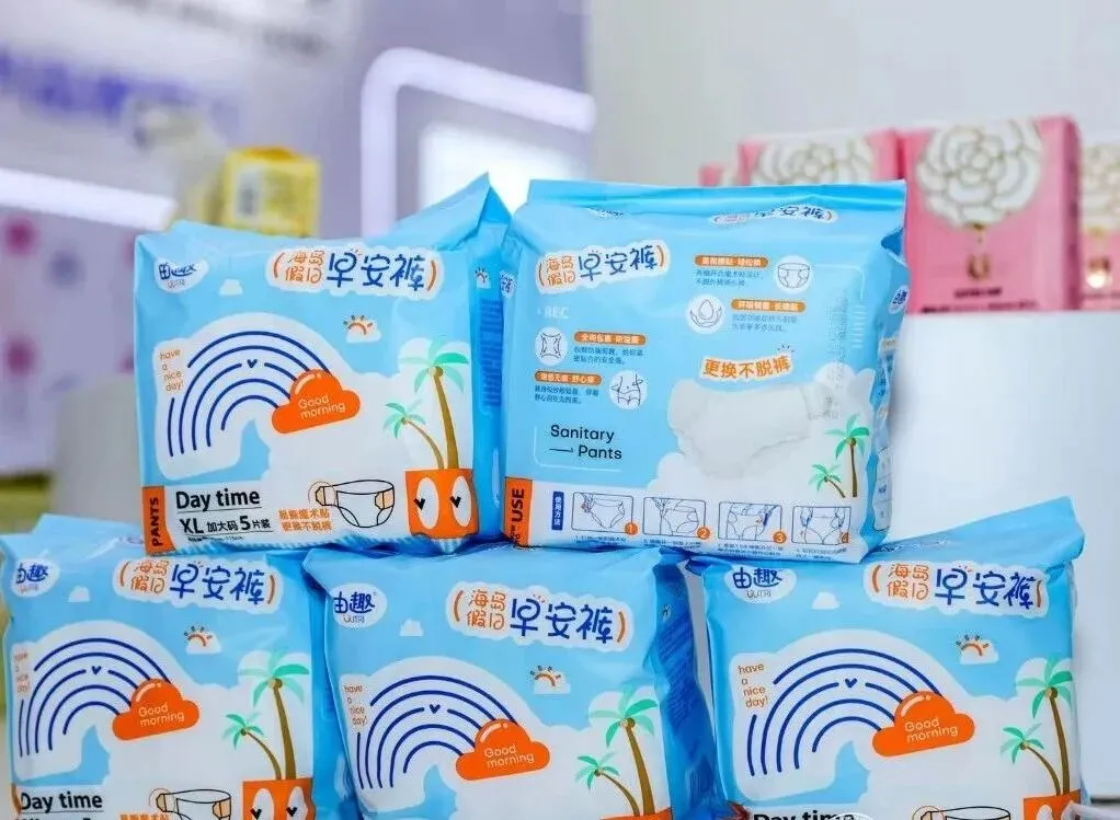 前几年,不少品牌把生产线转移到东南亚,图的是人工便宜、环保压力小。但疫情加上国际局势动荡,供应链太长、太脆了。今年中东一打,海运价格又飙,货柜订不到,交期一拖就是几个月。“客户现在不只看单价,更看稳定性和响应速度。”一个做全自动设备的展商说,“我们今年的新订单,好多都是从越南、印尼转回来的。国内工厂虽然人工贵一点,但自动化程度高、配套全、物流快。综合算下来,反而更有竞争力。”他指了指身后那条正在运转的生产线:“这条线每分钟800片尿裤,只需要两个人盯着。人工成本占比已经很低了。国内制造业,拼的不是便宜,是效率。”我在展馆里转了一圈,发现不只是设备商,原材料、包装、品牌服务的展商,都在聊“回流”这个词。以前觉得“制造业回归”是政策文件里的口号,今年在展会上,它变成了实实在在的订单和扩产计划。说回产品本身,今年展会上,技术细节依然让我大开眼界。展台上摆着一排排白色颗粒,像大米一样。这叫PP塑料米,是底膜和包装袋的原料。它要经过高温熔融、挤出、拉伸,变成各种“膜”——透气底膜、复合膜、流延膜,每种功能不同。透气底膜要让水汽出去、液体进不来;复合膜要把无纺布和吸水层粘在一起;流延膜要薄、要韧、还不能容易破。无纺布它分纺粘、热轧、熔喷等工艺,手感、强度、透气性全不一样。口罩火的时候天天听“熔喷布”,但它是怎么喷出来的,就这么说吧:高温熔融的聚合物从喷丝板挤出,被高速热空气吹成极细的纤维,然后铺在网帘上自粘合——整个过程像棉花糖机,但精细得多。无纺布还有自己的“身价单位”:旦。婴儿纸尿裤面层通常用1.5旦以下的超细纤维,追求极致柔软;成人失禁产品用2.5旦以上的纤维,在满足吸收需求的前提下兼顾成本控制。我摸了摸1.0旦的样品,滑得像丝绸。展商笑我:“对,这就是高端尿裤面层的料子。”以前大家觉得尿裤能兜住就行,现在从面层、导流层、吸收芯体到底膜,每一个部件都在往“更软、更薄、更透气”升级。卫生巾展区和大家记忆里的卫生巾不太一样了,除了传统日用、夜用、加长、护垫外,展台上摆着经期裤(像小内裤一样直接穿)、安睡裤(裤型腰围可调)、液体卫生巾(吸收巨快、表面巨干)、纯棉有机的、竹纤维的、添加了益生菌的,还有非经期使用的中药护垫贴。一个品牌小姐姐跟我说,现在用户需求太细了:少女要小尺寸、低致敏;职场女性要超薄、无感、坐一天不闷;产后妈妈要吸收量大、侧边防漏;更年期女性要透气、柔软、不磨皮肤。不同年龄、职业、场景,一款产品打天下的时代早过去了。她指着展架上一排十几个SKU说:“这里每一个,都是研发和消费者聊出来的。”从“能用”到“好用”,原来是被一句句吐槽推着走的。以前觉得这是小众,结果好几个展位前都有采购商。展商说,现在养宠物的年轻人,把猫狗当“毛孩子”。公狗发情期乱尿、老年犬失禁、母犬生理期……都需要专门的宠物尿裤。但宠物不会说话,尿裤舒不舒服,全靠主人观察。所以他们对吸收速度、防漏侧边、透气性要求特别高,有的甚至比婴儿尿裤还苛刻。我摸了摸他们的样品,面层居然也用到了1.2旦的无纺布,吸收芯体加了除臭因子。老板说:“宠物嗅觉灵敏,尿味散不出来,它们就不愿意穿。我连连点头,是的,只要尿裤/尿垫上有尿,它们就会换个地方。”其实一片小小的宠物尿裤,背后也是一套完整的供应链逻辑——从PP塑料米到各种膜,从吸收芯体到防漏设计,跟人用的卫品同根同源,只是尺寸和细节不同。今年采访包装类产品的时候,我算是开了眼界。接近三分钟的访谈视频中,我协助展示用的包装袋,就有一二十个。每个手感都不同——有的光滑如镜,有的磨砂质感,有的带着细密的拉丝纹理,有的表面均匀散布着金色亮点。色彩也丰富,哑光的、镭射的、热烫的……我一边摸一边记,当时根本记不住那些工艺名称,只觉得“这个好看”“那个高级”。回来剪视频,对着素材逐帧对字幕,那些我拿在手里不断更换包装袋,对应着的“拉丝”“金砂”“肤感”都是专业名词。我边查资料、翻行业标准、问业务大哥。拉丝膜,是通过特殊的挤出工艺在薄膜表面做出丝状纹理,手感高级还防滑;金砂膜,是把金属粉体均匀分散在树脂里再流延成膜,成本高但视觉效果极佳。做包装的研发老师跟我说:“现在的包装已经不是‘包起来就行’了。品牌方要的是‘触感溢价’——消费者一摸,就觉得这东西值这个价。”包装展区另一个热门话题是环保。以前说的最多的是“减塑”——把薄膜做薄一点,少用一点塑料。现在呢?好几个展商直接摆出了“再生料包装”。一个做可降解材料的展商跟我说,他们现在可以把废弃的塑料瓶、旧渔网甚至鸡蛋壳回收,经过清洗、粉碎、熔融、造粒,重新做成包装膜。摸上去和全新料几乎没有差别,但碳足迹减少了。我问:“那成本呢?”他实话实说:“现在还高一点,但订单量上来就能降。而且很多品牌已经愿意为环保买单了——欧洲客户尤其看重这个。”品牌设计展区倒是挺有意思。老品牌怎么焕新?新品牌怎么从0到1?IP打造、视觉升级、小红书打法……这些不在车间里,却决定了一个产品能不能被看到、被记住、被买单。站在电商、微商、全媒体卖货的风口,从“我有好产品”到“让用户知道我有好产品”,这个转型,在展