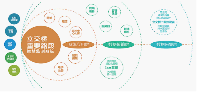 鸿粤立交桥/重要路段智慧监测系统是通过终端视频设备及GPRS/CDMA/4G网络或光纤网络远程实时监测道路低洼处、下穿式立交桥和隧道的积水水位,水位过高、设备异常时系统自动报警,并传送至城市内涝监测预警中心及自动向责任人手机发送报警短信,系统软件具备地图展示、数据存储、数据查询、数据统计、曲线分析等功能,系统软件支持OPC接口,可接入上一级综合指挥调度平台。