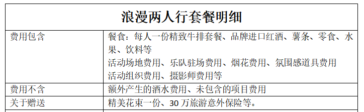 路线类型:庭院音乐会+精美花束+烟花秀+牛排红酒
