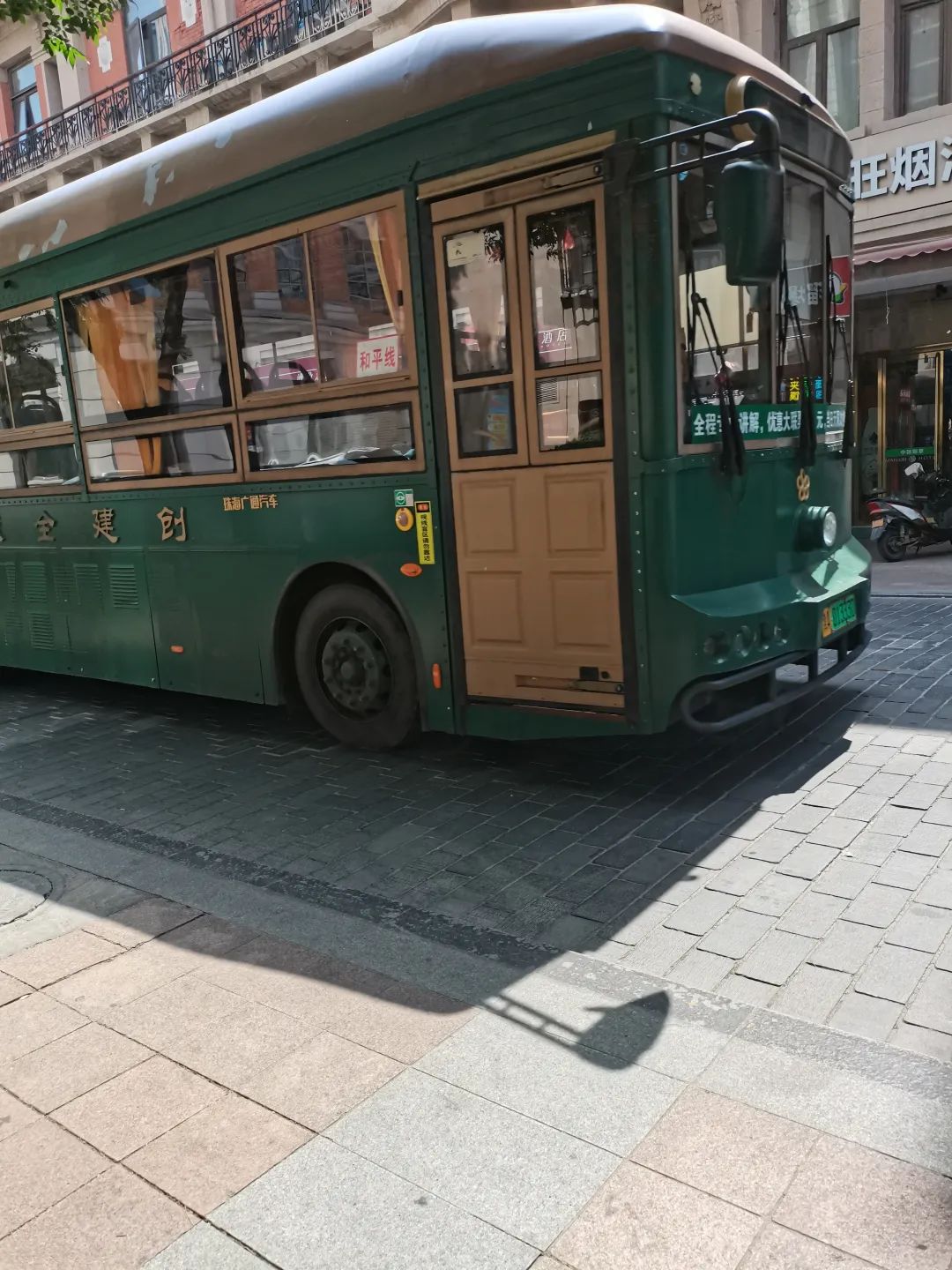 还是好热,在等公交车的时候,看到一辆复古巴士。(如果这是可以这么喊的话~)