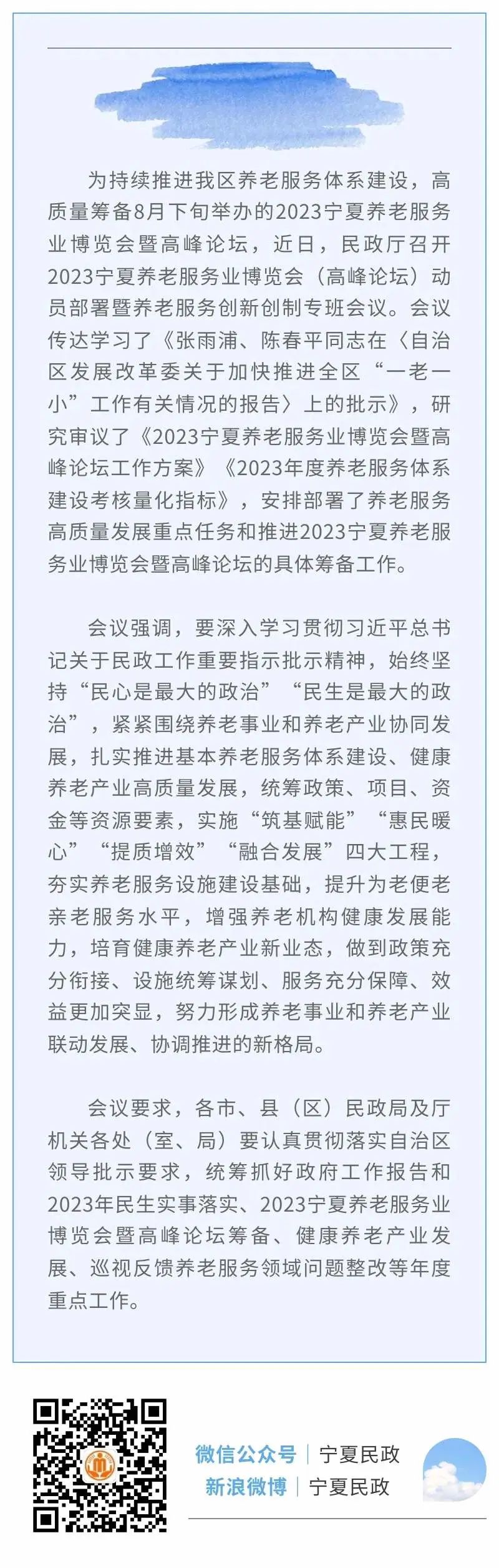 民政厅召开2023宁夏养老服务业博览会动员部署暨养老服务创新创制专班会议