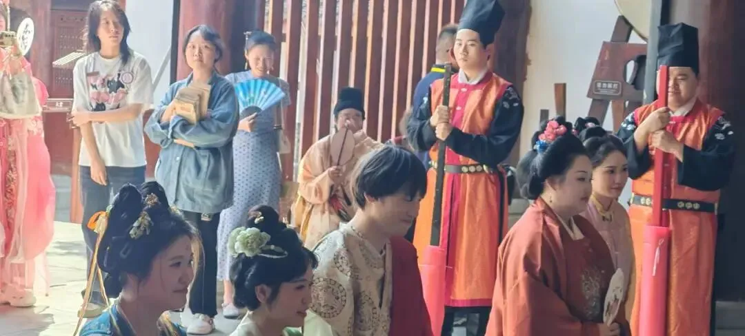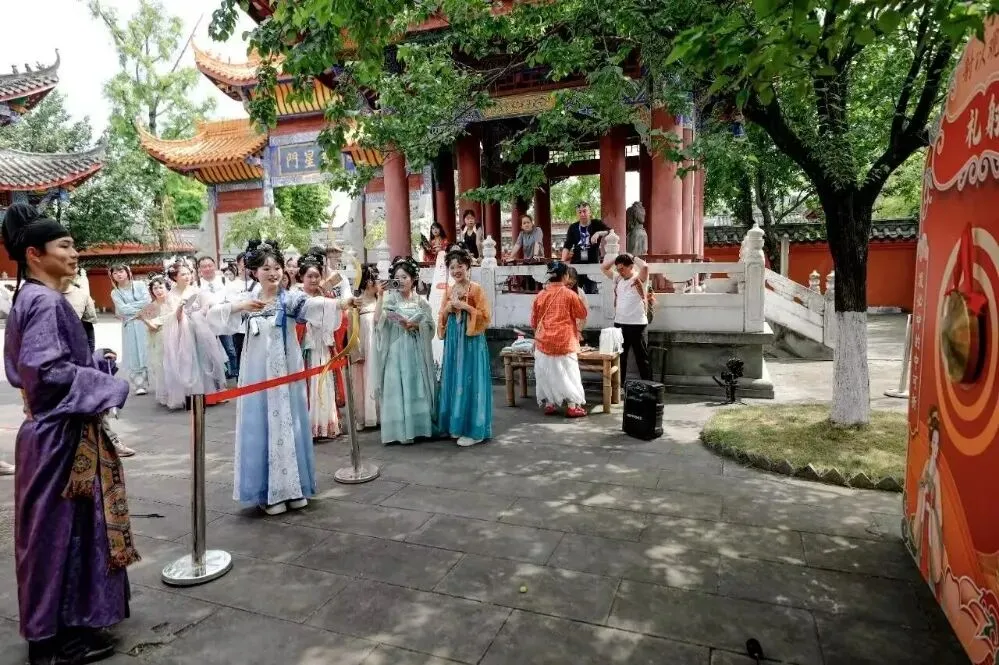汉服纪期间,古城小剧场沉浸式国风演绎轮番上演,学子们化身“国风守护者”,部分学子身着精致汉服,扮演古风角色,沉浸式融入川北道署《当一回小师爷》、贡院《初入考场的我们》等主题小剧场,与身着汉服的游客亲切互动,让游客在沉浸式体验中感受千年阆苑的文脉风华与汉服魅力。