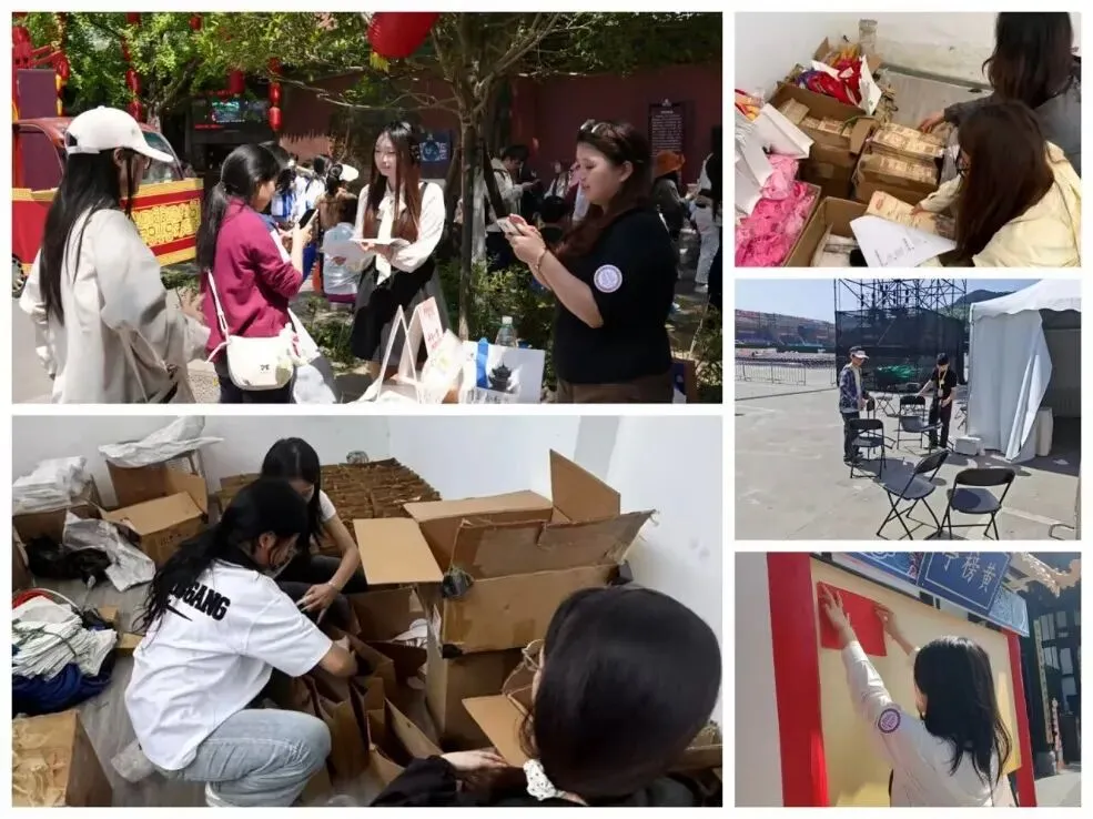 工作型志愿者们主动坚守岗位,引导游客参与剧场活动、协助开展汉服打卡、国风体验等活动;后勤道具组的学子们则默默付出,重点负责奖品道具的整理、搬运与归置,为汉服纪集章换礼活动顺利开展筑牢后勤保障防线。
