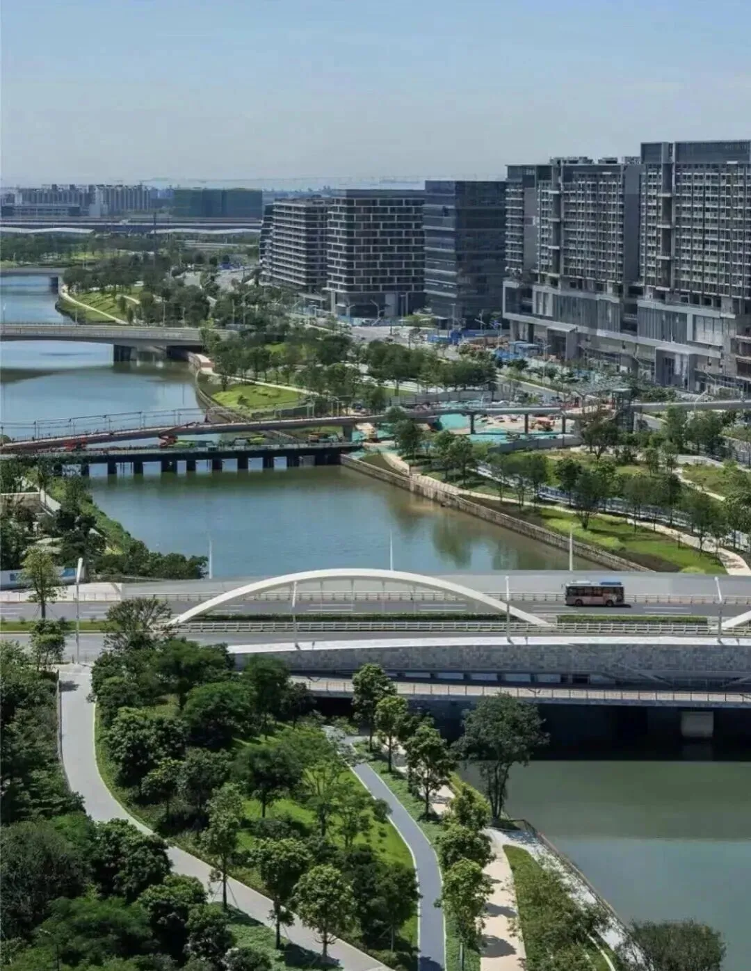 还有绿道公园沿河分布,崭新整洁、鸟语花香,让人心旷神怡。