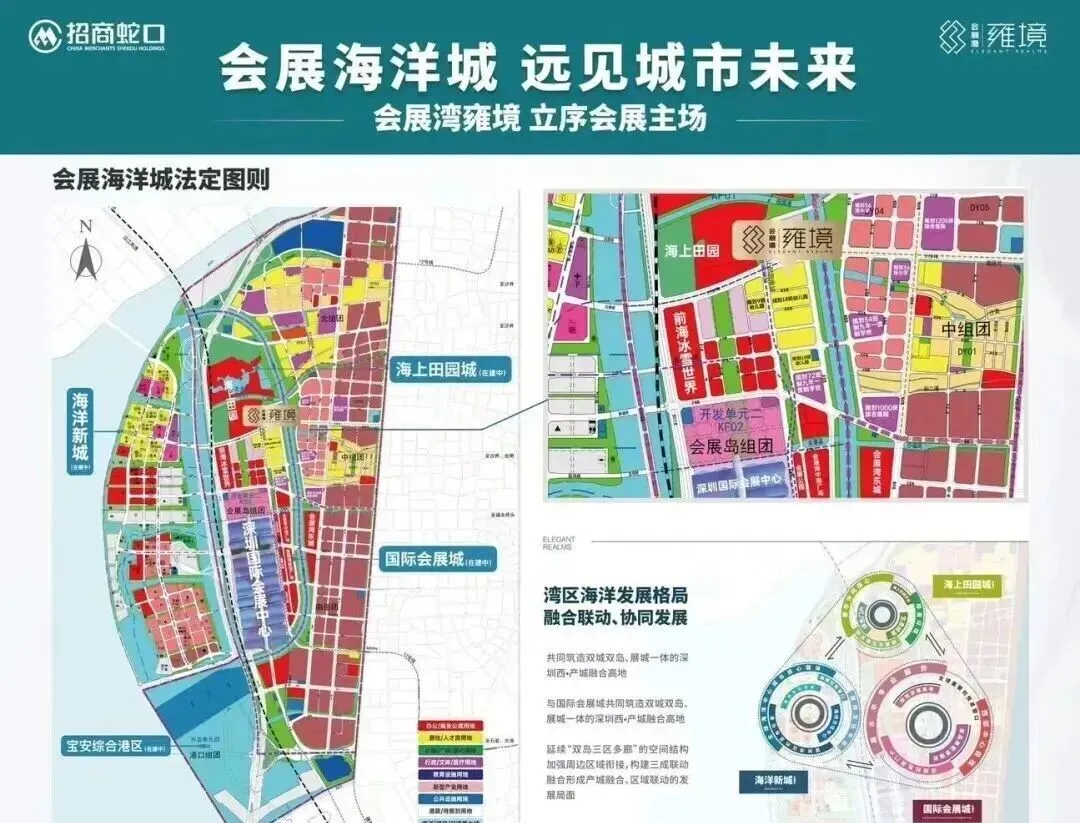 云海臻府项目位于深圳市西部宝安区沙井国际会展中心片区(宝安区沙井街道展景路一侧)深圳西北部,受深圳国际会展中心、海洋新城两大重要规划包夹。区域以东为沙井先进制造业集合区,向北跨越海上田园为东莞滨海湾新区。双重价值辐射,执掌湾区的厚实产业基底全球最大国际会展中心,百场展贸赋能,聚合千万人流及千亿效益。总占地面积约148万㎡,相当于1/3福田,距离项目仅1km,直接承接会展新城发展利好。
