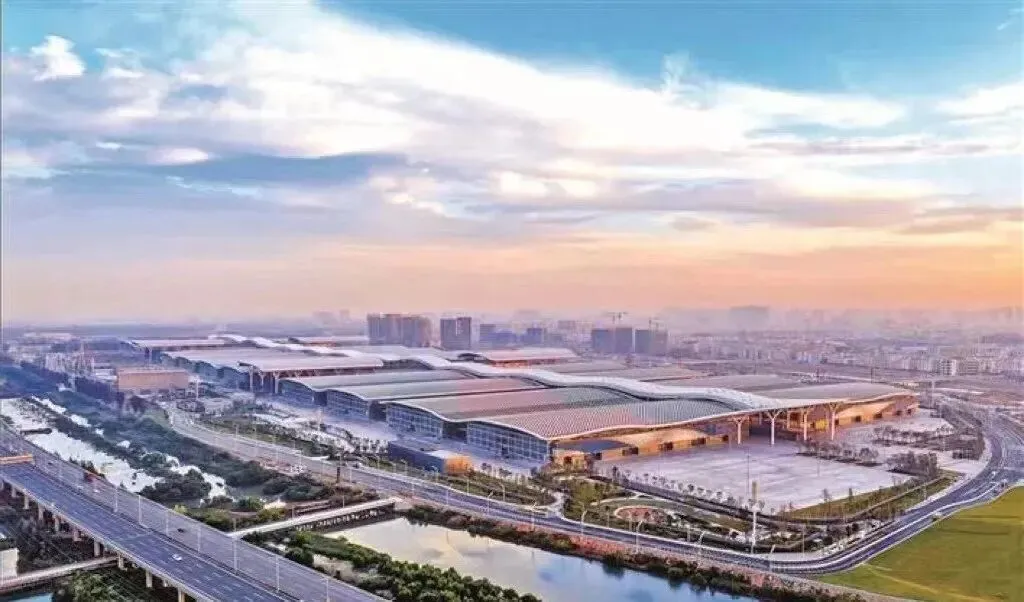 南面,是蜿蜒的会展河,倒映着蓝天白云。