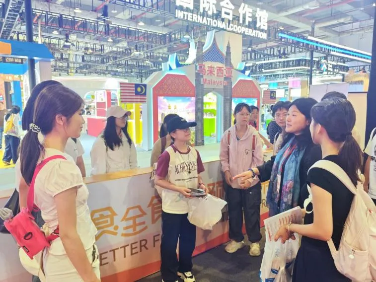展会期间,师生一行深入各大企业展区,主动与参展企业负责人围绕产品研发、加工工艺及市场趋势展开交流。同学们品鉴了来自全国不同省份的地方特色食品,切身感受各地饮食文化的独特魅力与差异化优势,并走进国际合作展区,了解国外饮食文化及国际贸易规则。通过对比不同国家和地区食品产业的发展特点,同学们对全球食品行业的多元格局与产业脉动有了更加直观、全面的认知。