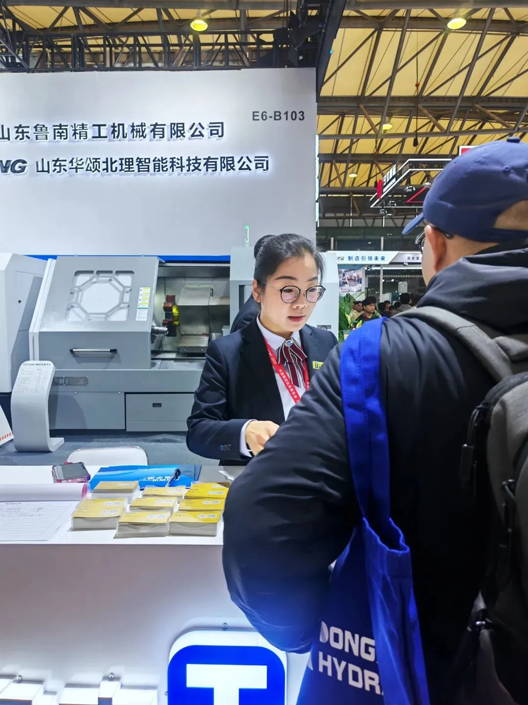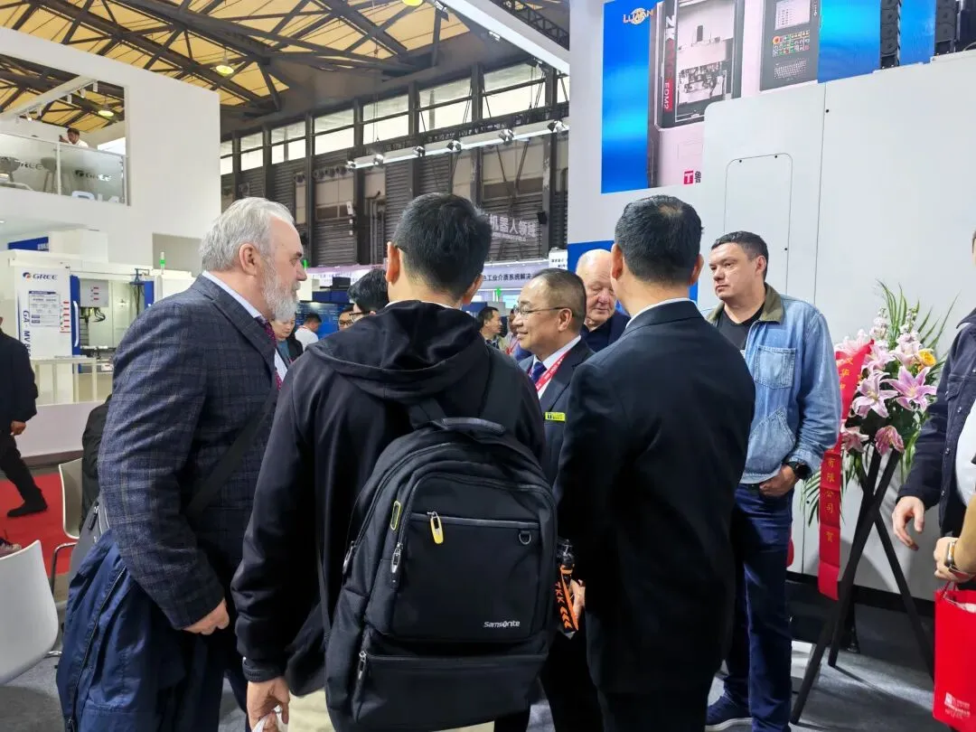 今天上午,集团董事长出席展会主办方会议,为鲁南机床强势背书推介。更让人振奋的是,市里相关领导也专程赶赴展会现场,为本地机床制造企业站台助力。会议结束后,董事长来到我们的展台视察。看着精心布置的展台与络绎不绝的人气,董事长高兴的说:“这次展会展台布置规范大气,团队成员精气神十足,干劲满满。我们辰龙人就需要这份脚踏实地、奋勇争先的工作态度和精气神。”董事长走到设备前查看加工试件,连连称赞,并细致询问技术细节,认真观摩展出的各类机床设备,随后对董事长说道:“展会是咱企业展示的窗口,这里的每一位员工,都是鲁南机床也是辰龙集团的名片,咱们大家一定要全力以赴,圆满完成展会任务。”