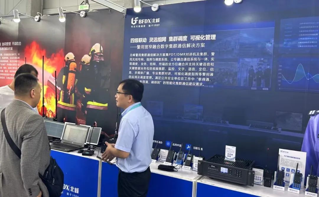 公安应急通信系统是处置突发事件不可或缺的重要保障。现场应急通信设备需要具备部署快捷、组网灵活、操作简单、携带方便、抗干扰力强等特点,才能最大程度减少一线作业人员的负担。北峰“天地空”一体化应急通信全融合解决方案采用专门为军队、武警、公安、应急和政府公共安全部门处置应急突发事件而设计。可提高指挥效率、助力指挥救援工作,基于“天地空”多网融合通信技术实现语音、视频、数据等信息融合,将有线/无线语音调度、视频调度、灾害(事故)现场监控和指挥调度融为一体。在极端环境下BF-TR925系列自组网设备可以迅速为应急现场提供易拆易建、即用即通的大范围的语音、数据等业务覆盖,其强大的接力扩展功能使得系统具备很强的环境适应力,适用于应急事件现场快速部署、分队战术通信等场景。简单的语音通信已成为过去式,智能化、可视化、公专融合成为新的方向。此次展会,北峰PDT集群对讲机、多模智能对讲机、PDT防爆终端等不同种类的终端悉数集结,根据不同环境及不同事件的执勤条件下进行灵活融合配置,以满足不同警务场景下的应用。其中,全新推出的多模智能对讲机(SCP970、SCP950、SCP810),当PDT/DMR网络信号弱或无信号时,北峰多模智能终端可以自动进行网络切换,时刻保证关键语音业务,实现“无盲区、无感知”的全域通信。在既能确保关键语音通信的大范围覆盖和快速连接时,又能满足用户视频和应用集成等信息高效传递的业务需求,为用户实现从单一语音通信向多媒体业务的融合升级,助力公共安全单位提升实战速度、提高移动化办公工作效率和警务管理智能化水平。未来,北峰通信将面向公共安全领域,持续保持科技创新,不断推出适配公安实战需求的产品和解决方案,帮助警用行业客户提升智慧通信能力,从容应对日常巡检、应急处突、反恐救灾等警务挑战。