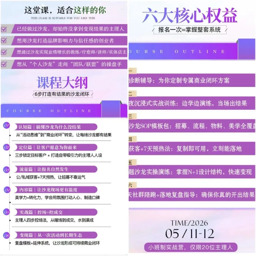 这套课程,是经过无数场沙龙验证的实战体系。
