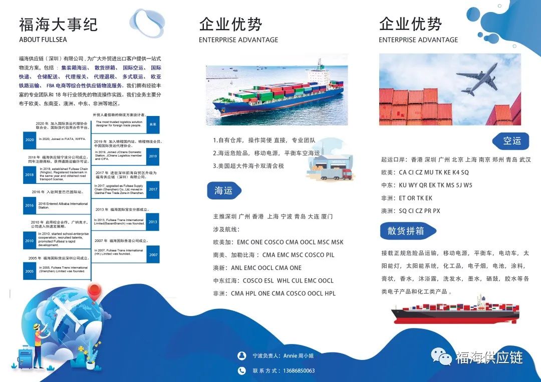 福海供应链(深圳)有限公司,为广大外贸进出口客户提供一站式物流方案,包括 :集装箱海运、 散货拼箱、 国际空运、 国际快递、仓储配送、 代理报关、 代理退税、 多式联运、 欧亚铁路运输、 FBA 电商等综合性供应物流服务。我们拥有经验丰富的专业团队和 18 年行业领先的物流操作实践。业务主要分布于欧美、东南亚、澳洲,中东、非洲等地区。