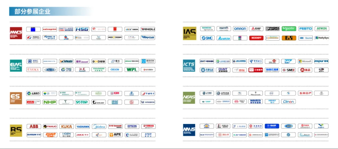 9大专业展:MWCS数控机床与金属加工展,IAS工业自动化展,RS机器人展,GLCS绿色低碳与,工业节能配套展,ICTS工业新一代信息技术与应用展(FTIS空天陆装备展),ES智慧能源展,STIS科技创新展和NMIS新材料产业展,