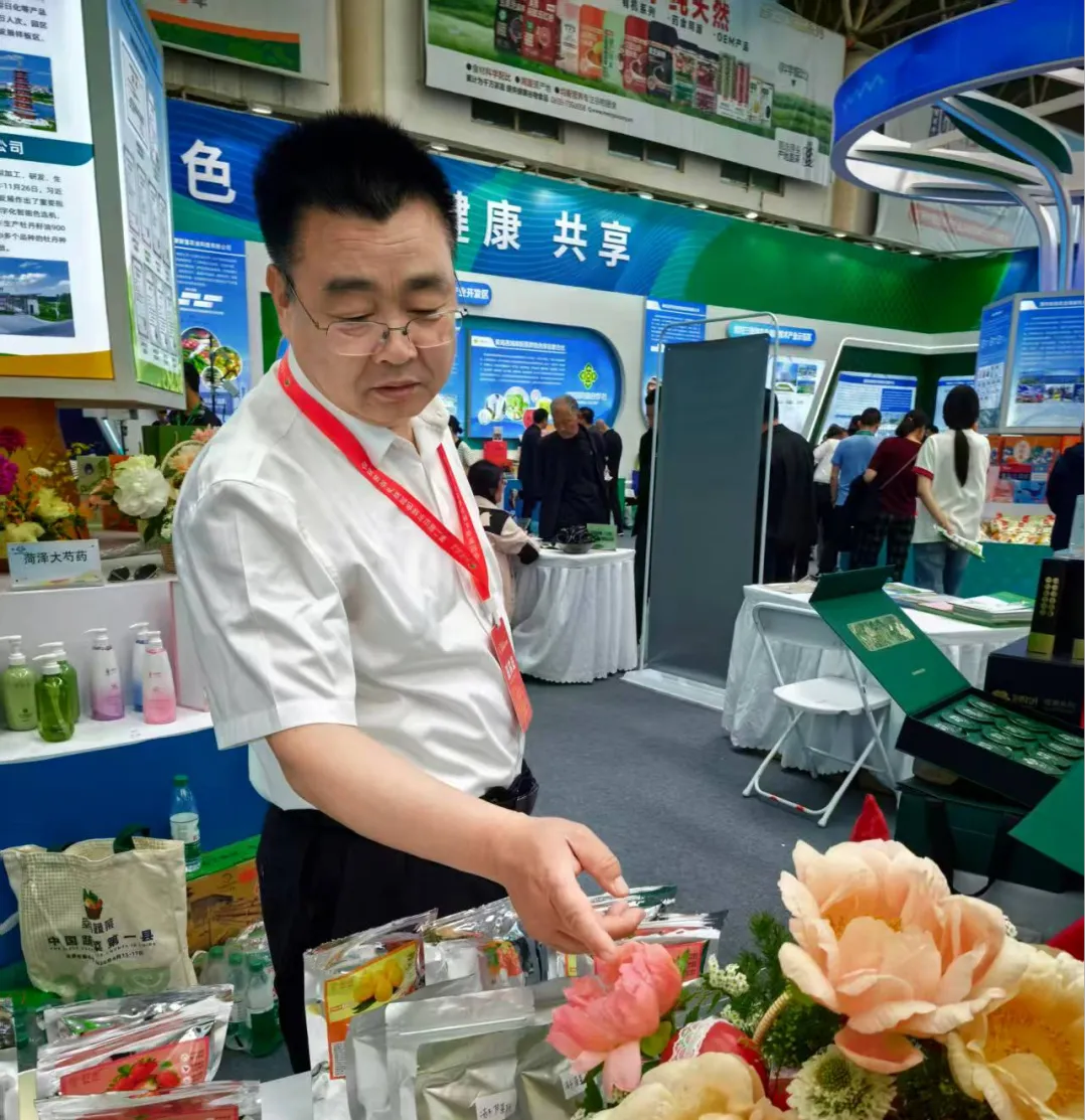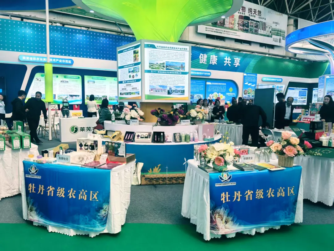 牡丹农高区由管委会主任郭现臣带队,携牡丹产业特色产品参展。为充分展现园区特色形象,工作人员对展会展台进行了精心规划与细致布置,从整体布局、产品陈列到氛围营造精益求精,以整洁规范、特色鲜明的展台形象,全面呈现牡丹产业发展成果。