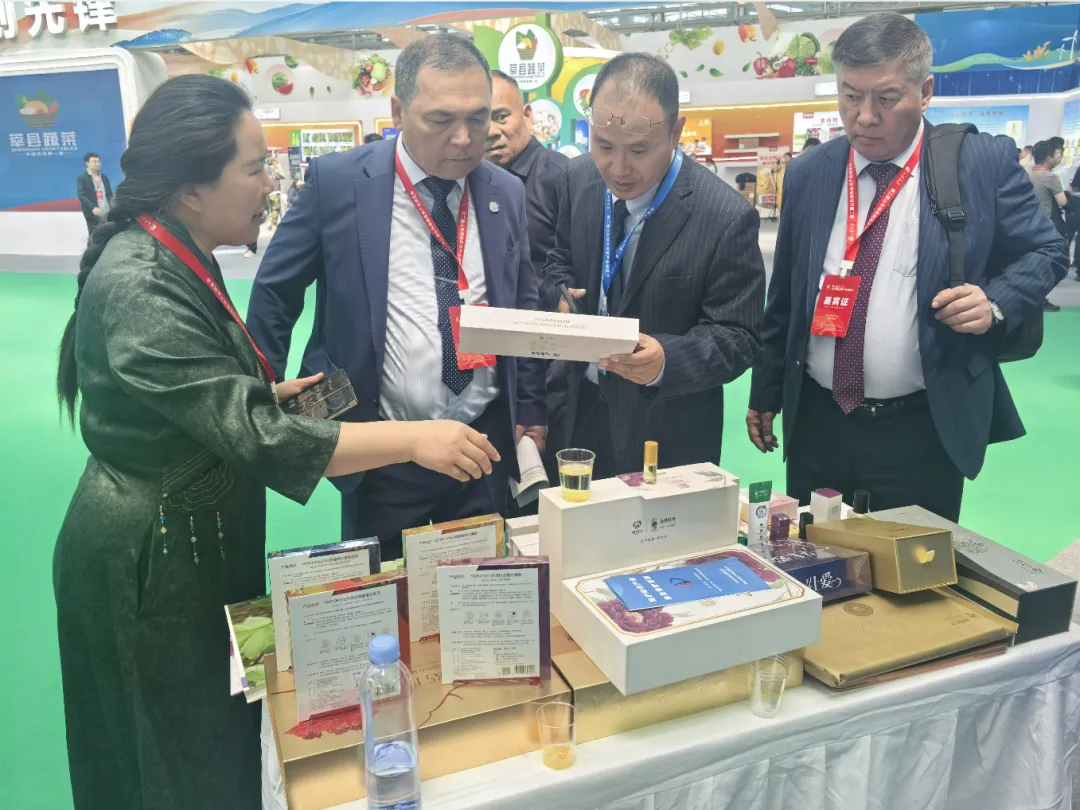 在牡丹农高区的展台前,富含牡丹特色的蔬菜花篮、鲜康农业的冻干蔬菜和牡丹加工企业的洗化产品吸引了不少参展客商和市民群众驻足。在展会上,乌兹别克斯坦塔什干化工学院校长来到牡丹农高区展台前,对牡丹花蕊茶、牡丹籽油和牡丹精纺四件套表现出了极大的兴趣,并欢迎农高区到乌兹别克斯坦考察。