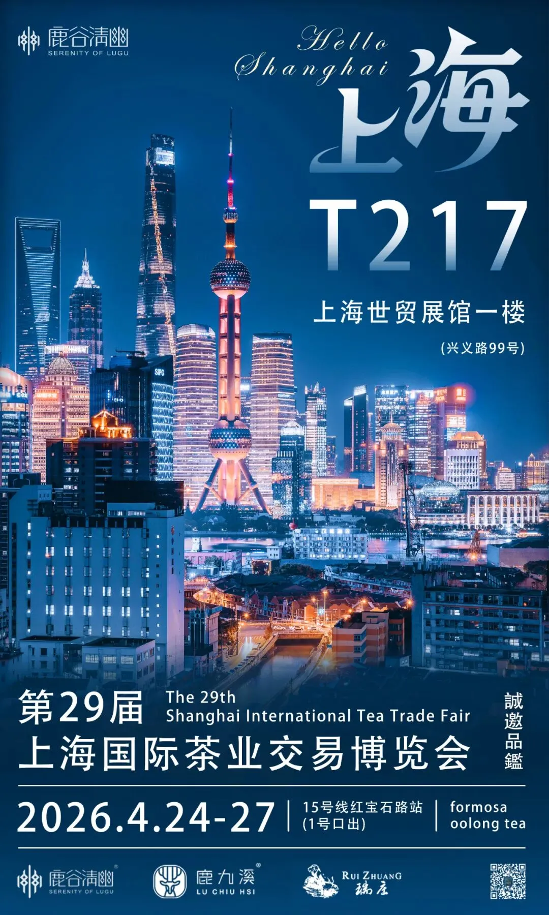 在上海世贸展馆一楼(兴义路99号)15号线红宝石路站(1号口出)