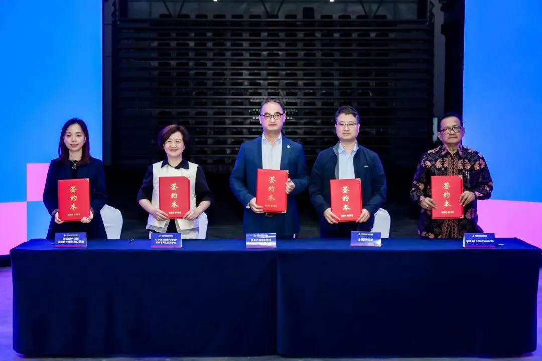 活动现场,全国智能建筑及居住区数字化标准化技术委员会、印尼绿色建筑委员会、物联网产业园国家数字服务出口基地与杭州西湖国际博览有限公司正式签署合作协议,未来将在标准互通、绿色认证、数字服务出海等方面开展深度合作。